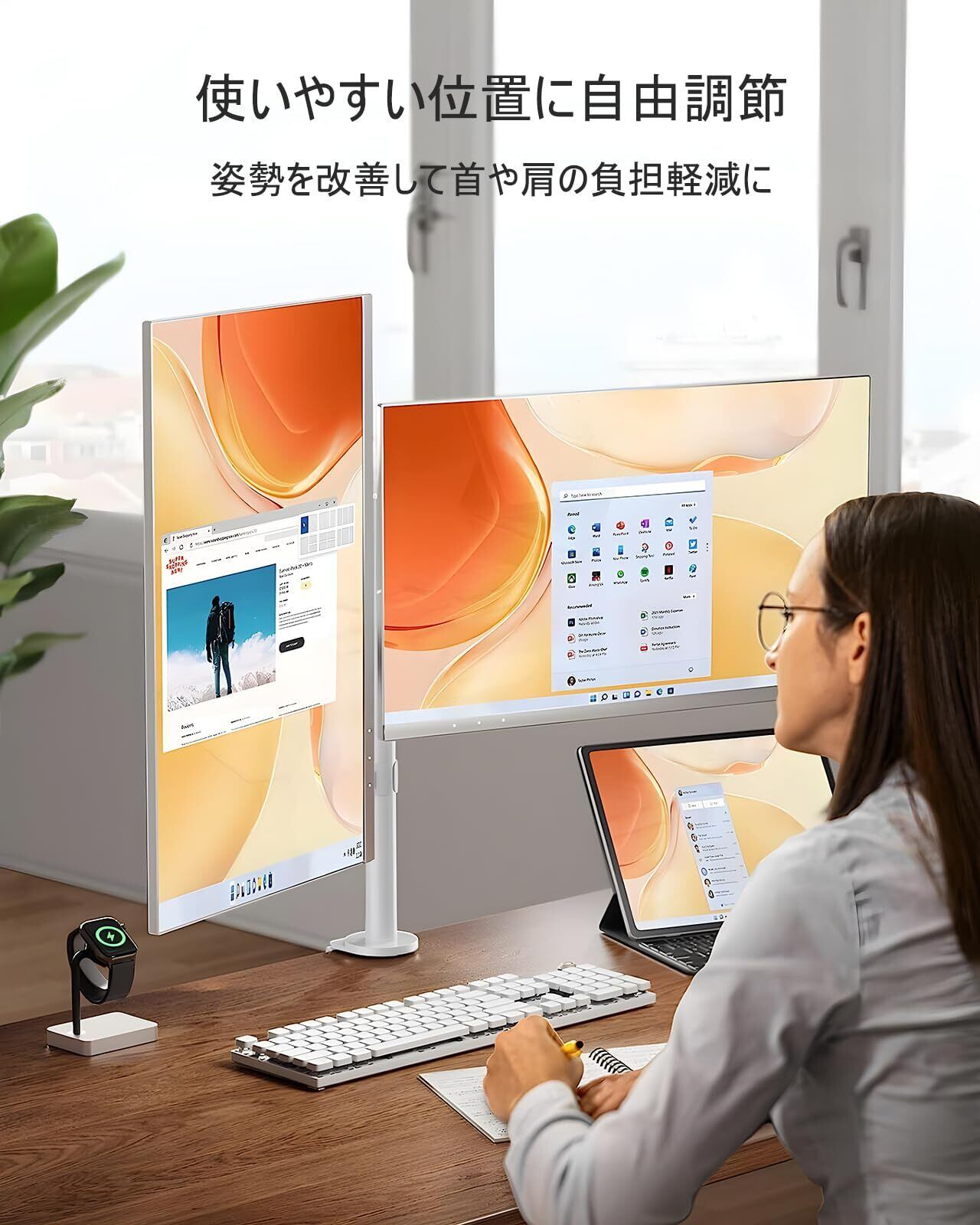 ErGear モニターアーム デュアル 2画面 ホワイト/白 13~32インチ対応 耐荷重2-8kg VESA規格75*75mm 100*100mm ディスプレイアーム PCアーム クランプ式 グロメット式 多角度調節 配線収納 | yankees