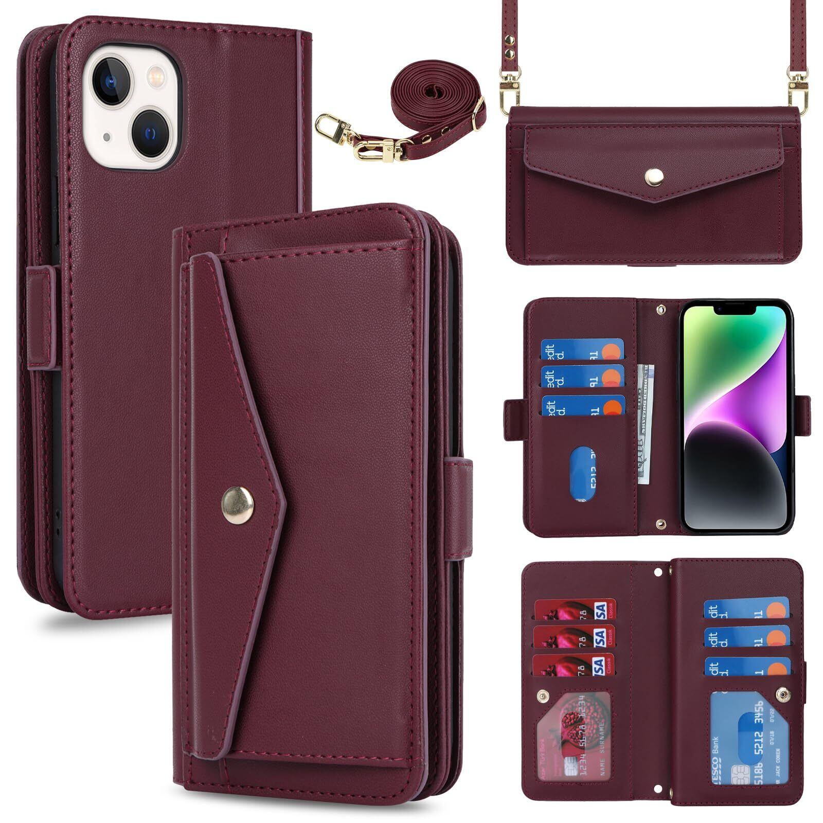 【Hamany】 いphone14 ケース 手帳型 スマホ ショルダー iphone 14 ケース カード収納 大容量 スマホケース iphone 13 スタンド機能 財布型 耐衝撃 耐久性 全面保護 女性 肩がけ 首掛け 斜め掛け ショルダー 携帯カバー -ワインレッド | yankees