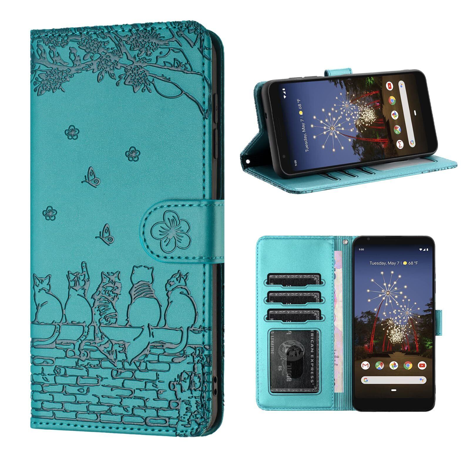 Google Pixel 3A ケース 手帳型 スマホケース グーグル ピクセル3a ケース 手帳型 人気 おしゃれ Pixel 3A 手帳型 ケース Pixel 3a 携帯カバー 可愛い ピクセル 3a 手帳ケース かわいい猫と美しい桜柄 ぴくせる3a 手帳型ケース 財布型 カバー PUレザー 手触りが良い 全面保護 カード収納 マグネット式 スタンド機能 (5.6インチ)レイクブルー