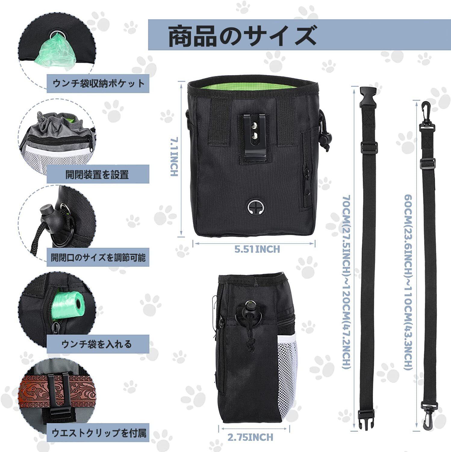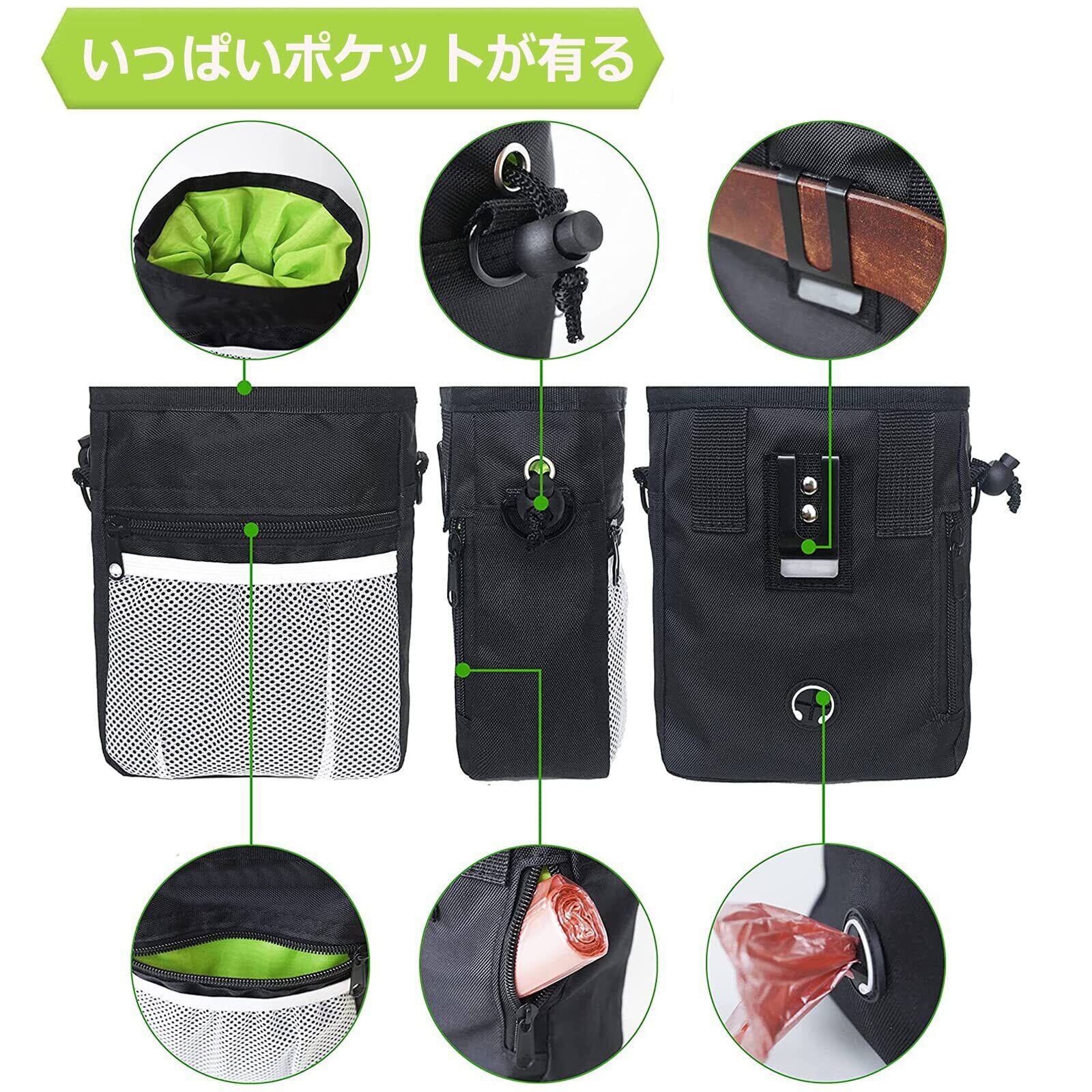 【Charming Decoration】トリーツポーチ 犬用 ウエストポーチ ショルダー 肩掛け 大容量 軽量 多機能 おしゃれ 犬お散歩バッグ(ブラック)