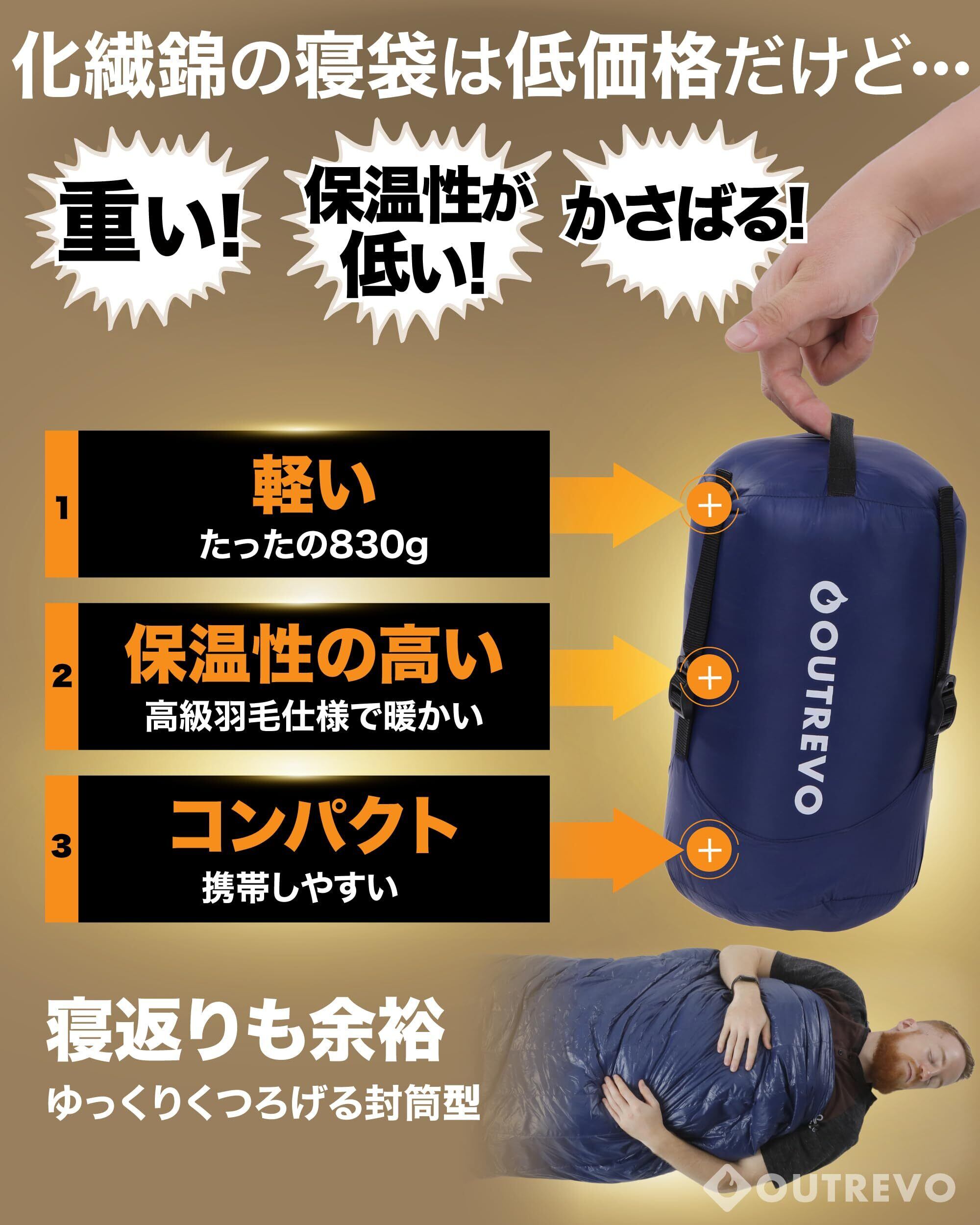 OUTREVO 寝袋 ダウン 封筒型 軽量 防水 グースダウン 400g 連結してふたり用に コンパクト シュラフ アウトレボ