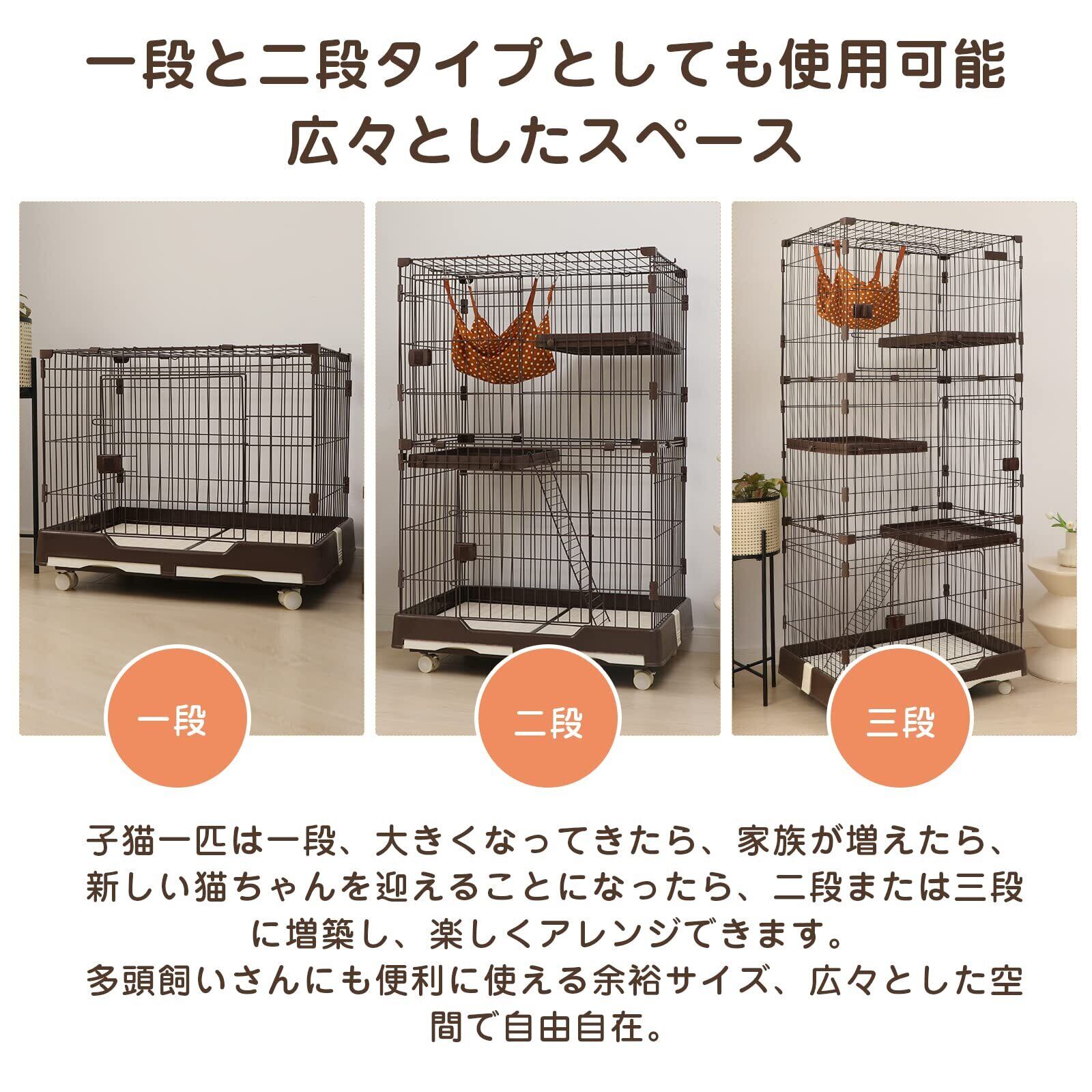 PETTOM 猫ケージ キャットケージ ケージ 幅82cm 2/3段 ペット 猫 キャットゲージ キャット タワー 収納 キャスター 付 脱走防止扉 頑丈 檻 ねこ ネコケージ コンパクト ハンモック 多頭飼い (三段(82*57*179CM))