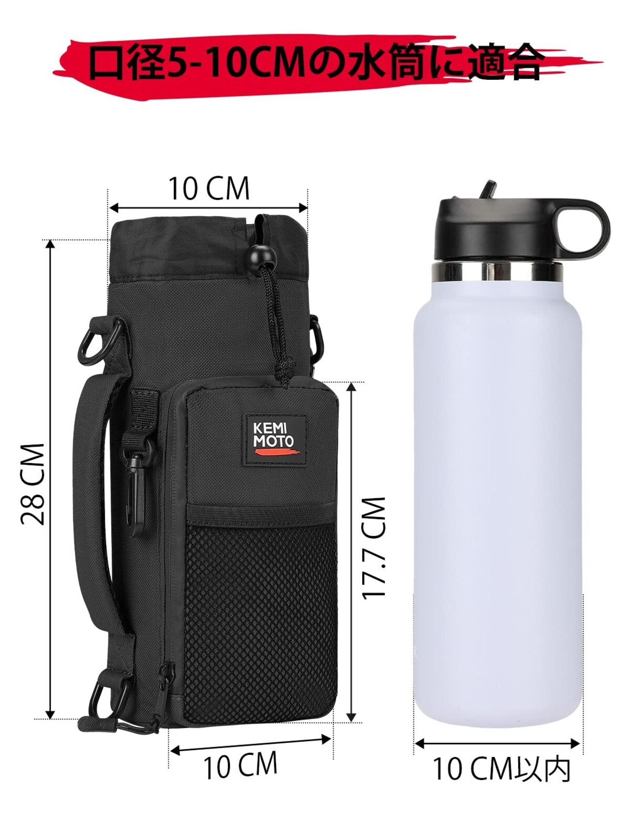 KEMIMOTO 水筒カバー 1リットル ペットボトルホルダー 保冷 保温 真空断熱 水筒かばー ショルダー 子供 ボトルケース メッシュポッケ付き 水筒ホルダー 手提げ 肩掛け 大容量 900ml-2000ml 調節可能な引き紐が付き 登山/通学/散歩/アウトドア運動 10cm以下直径のボトルに対応(高さ28cm) ブラック ペットボトルカバー