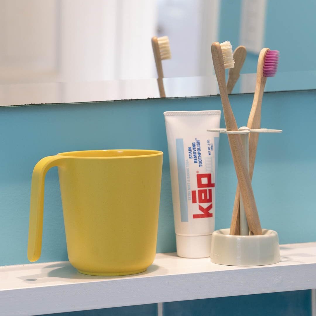 ナチュラルな印象で清潔感のあるお花型歯ブラシホルダー。