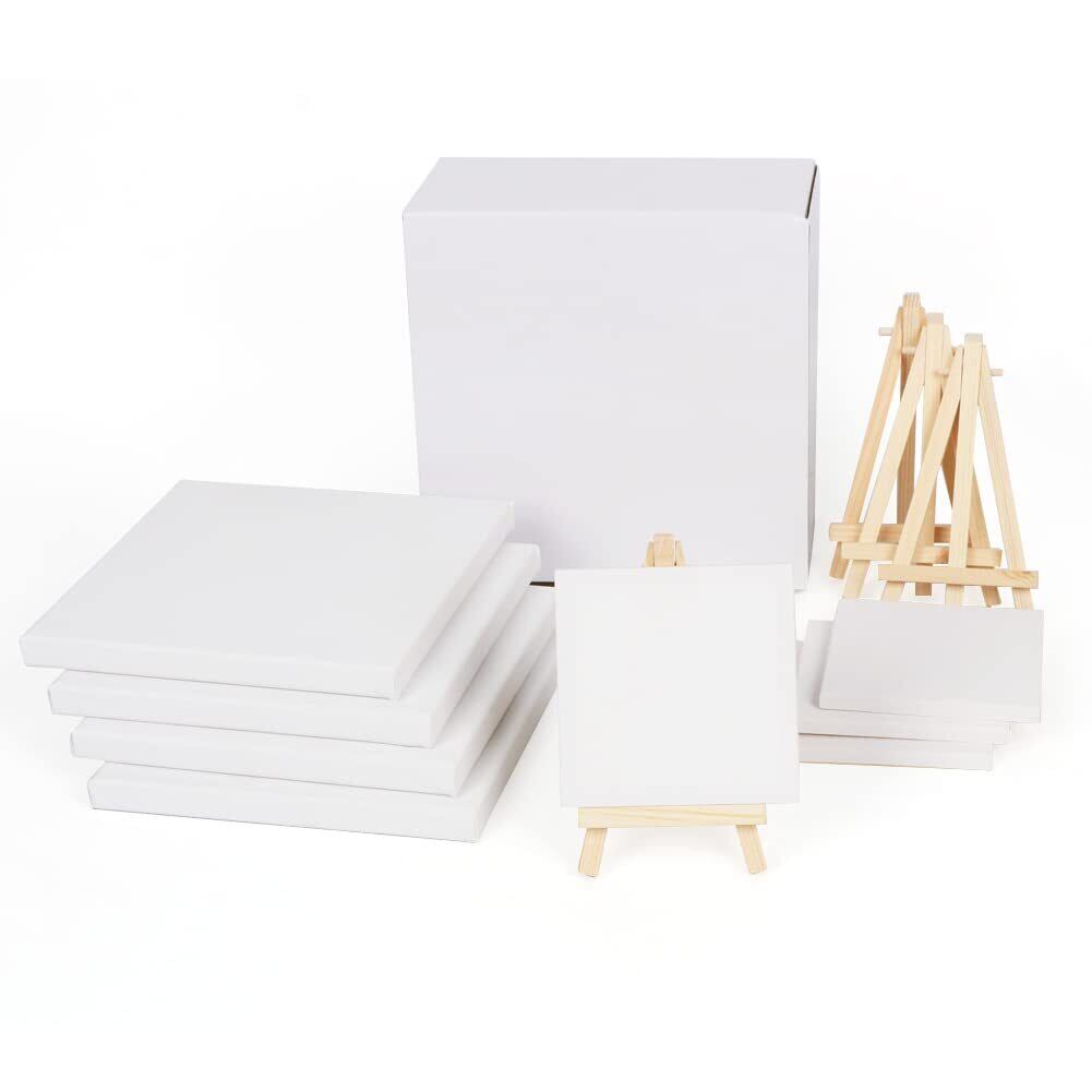 YTOPRO 8枚セット キャンバス S0 木枠 油絵キャンバス 正方形 画材 木枠張りキャンバスボード 油絵画・アクリル兼用 アーティスト画布 オイル漏れ防止 部屋飾り S0サイズ4枚 10*10cmミニキャンバス4枚+イーゼル4個 (正方形8枚セット)