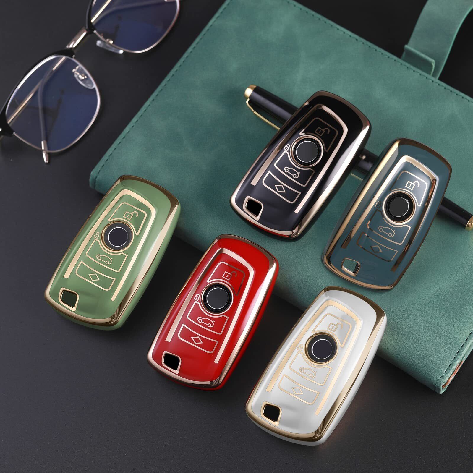 [OATSBASF] スマートキーケース BMW キーケース BMWキーカバー1 3 4 567シリーズ X3 X4 M5 M6 GT3 GT5 リモートコントロールキー 専用 ソフトTPU防塵 全面保護 (金縁ホワイト) | yankees