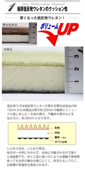 【クッション性抜群】厚さ約20mmの高密度低反発ウレタンを使用し、ラグの厚さが約25mmになります。