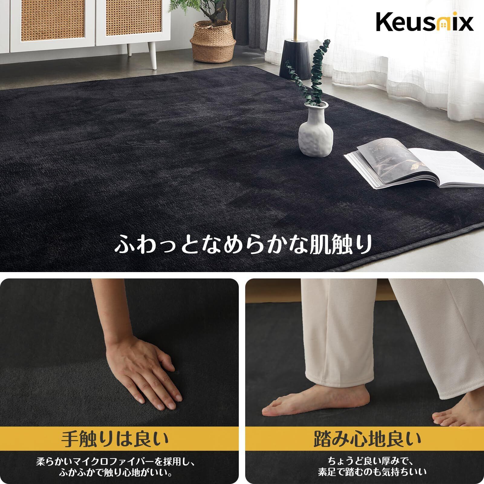 Keusnix カーペット ラグ ラグマット滑り止め付 洗える 135×185cm 約1.5畳 絨毯 防ダニ 抗菌 防臭 オールシーズン快適に使用 床暖房 ホットカーペット対応 ふわふわ肌触り フランネルラグ 無地 ブラック