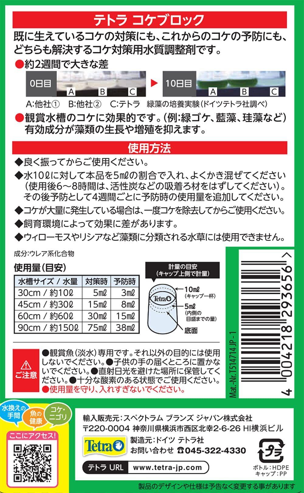 テトラ (Tetra) コケブロック 250ml コケ抑制 既に生えているコケ対策 これから生えるコケの予防 甲殻類も安心 ナマズ アロワナなどにも安心 水草に安心