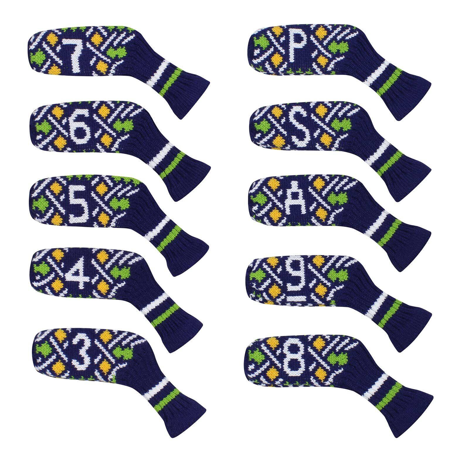 Scott Edward ゴルフアイアンヘッドカバー 7/10個 セット 入り かわいい 基本的に靴下の形 洗濯可能 耐久性 ゴルフクラブヘッドプロテクター