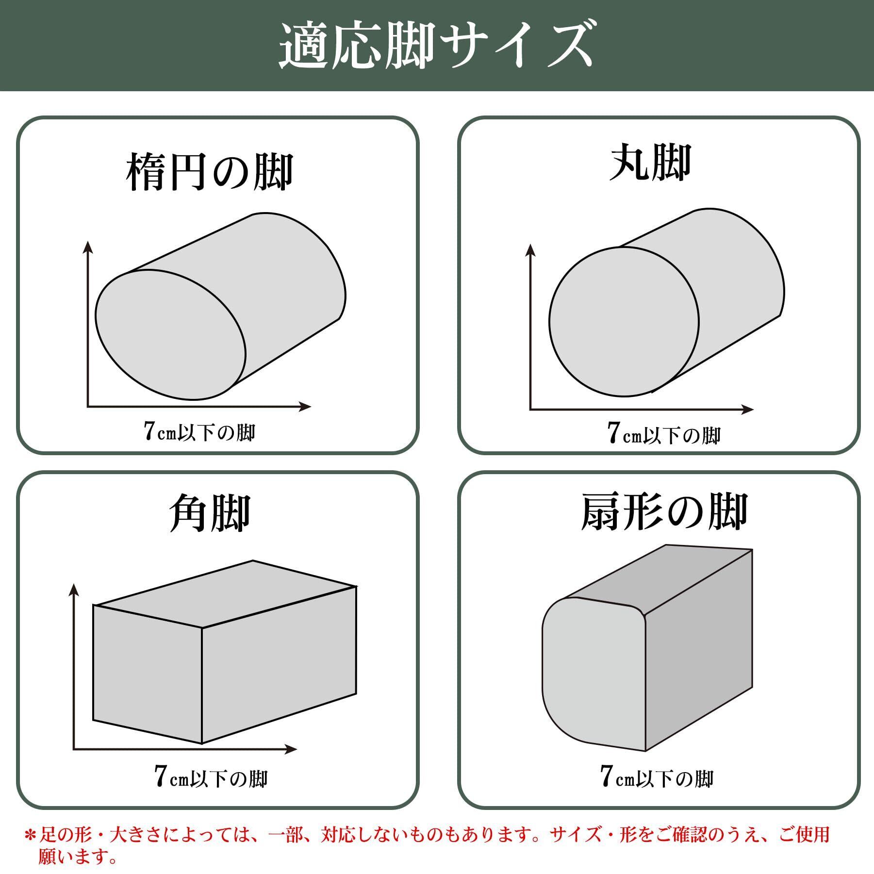 【使用場所】テーブル、椅子、ベッド、ソファー、こたつ、タンスなど、幅広い家具に使用できます。家具だけでなく洗濯機や冷蔵庫など大型家電でも使用可能です(耐荷重1000kg)。そして、フローリングや床を傷めないクッションにつき、床や家具にも保護します。