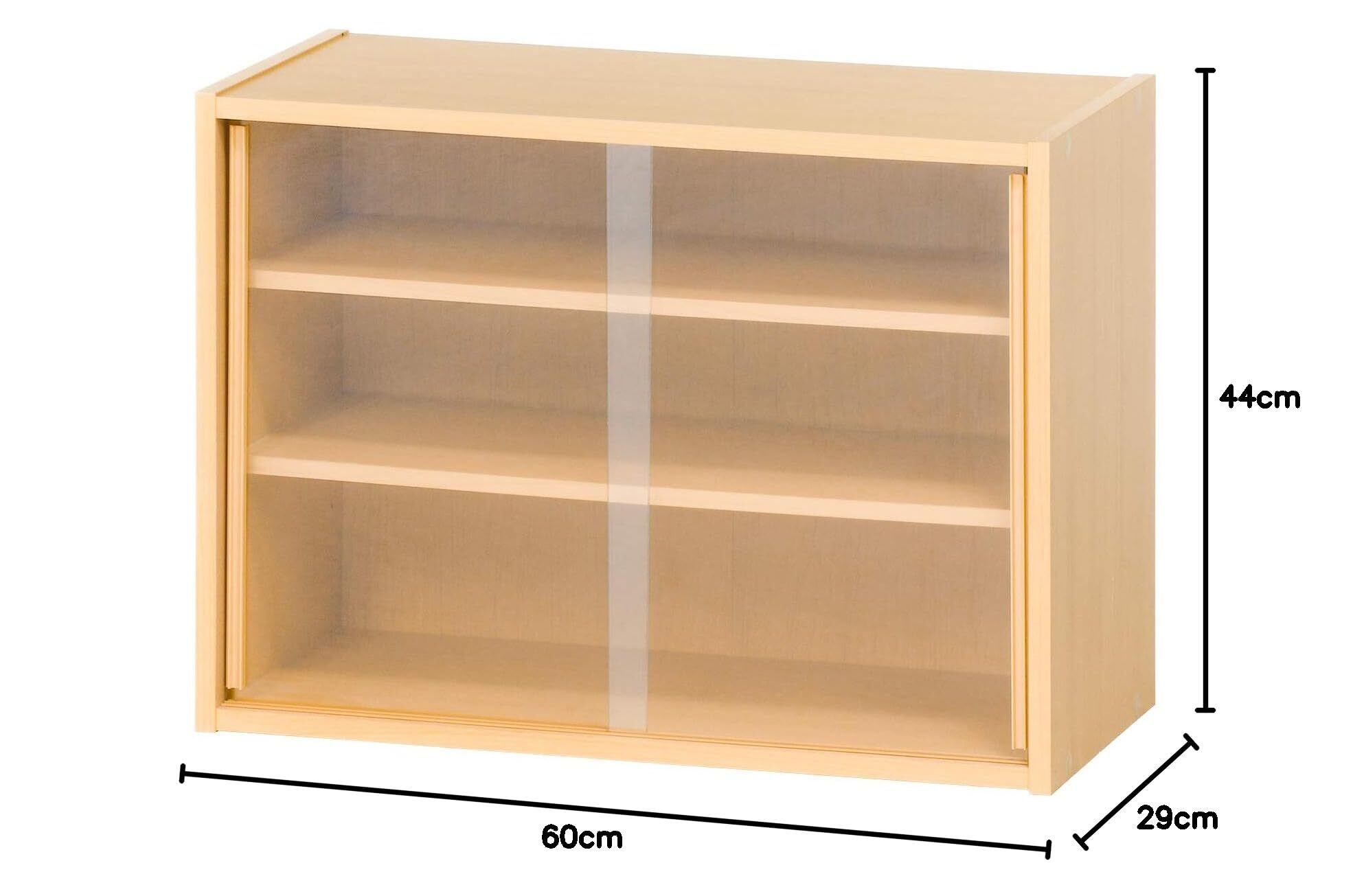 不二貿易 食器棚 キッチン収納 幅60×奥行29×高さ44cm ナチュラル ガラス扉 可動棚 組立品 81909