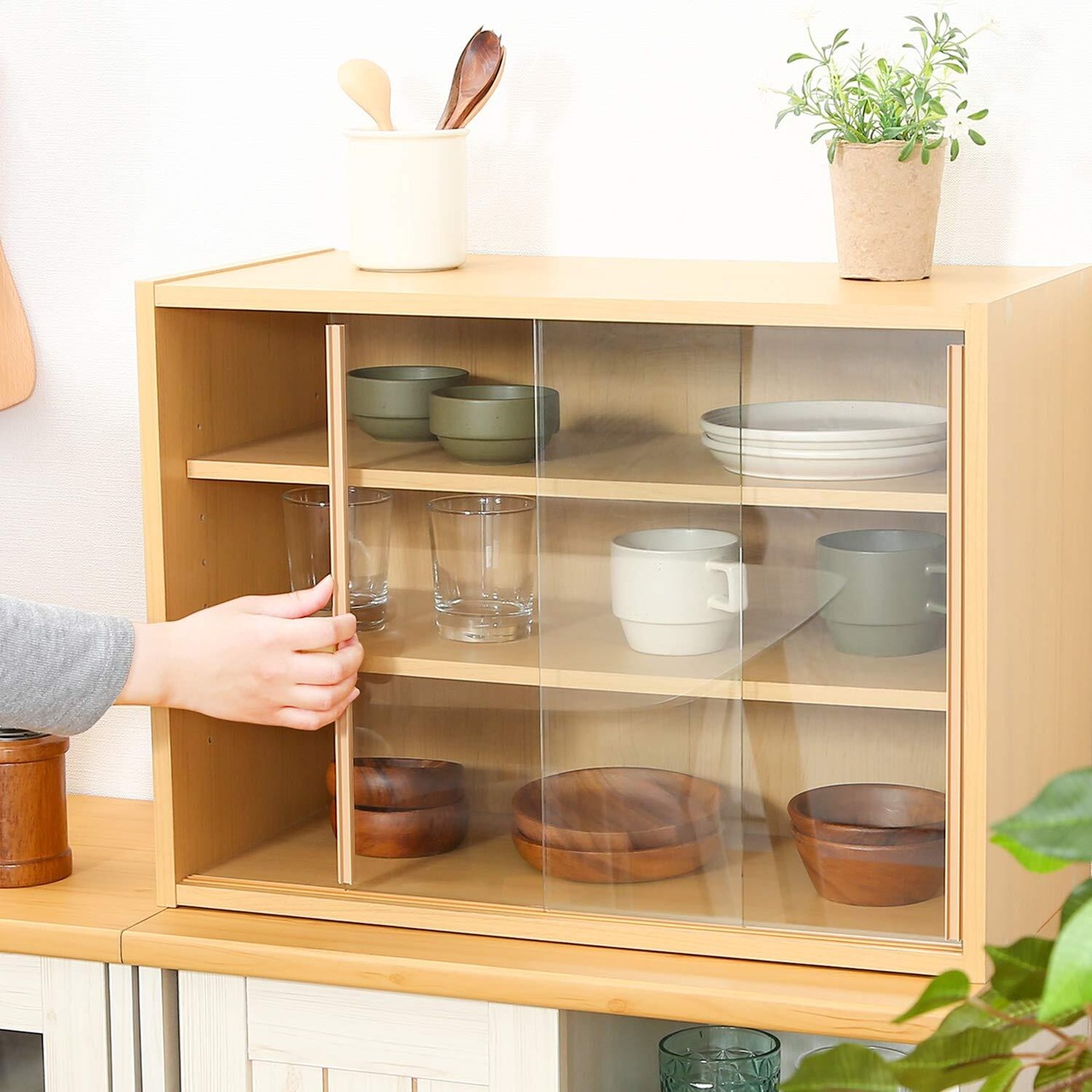 場所を取らずに設置できる、丁度いいサイズの食器棚。