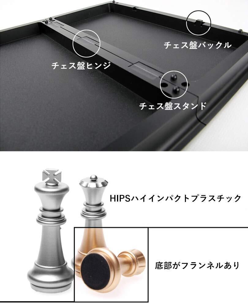KOKOSUN チェスセット 国際チェス マグネット式 折りたたみ盤 チェスボード 金と銀の駒 収納便利 大人 子供 入門用 (S)