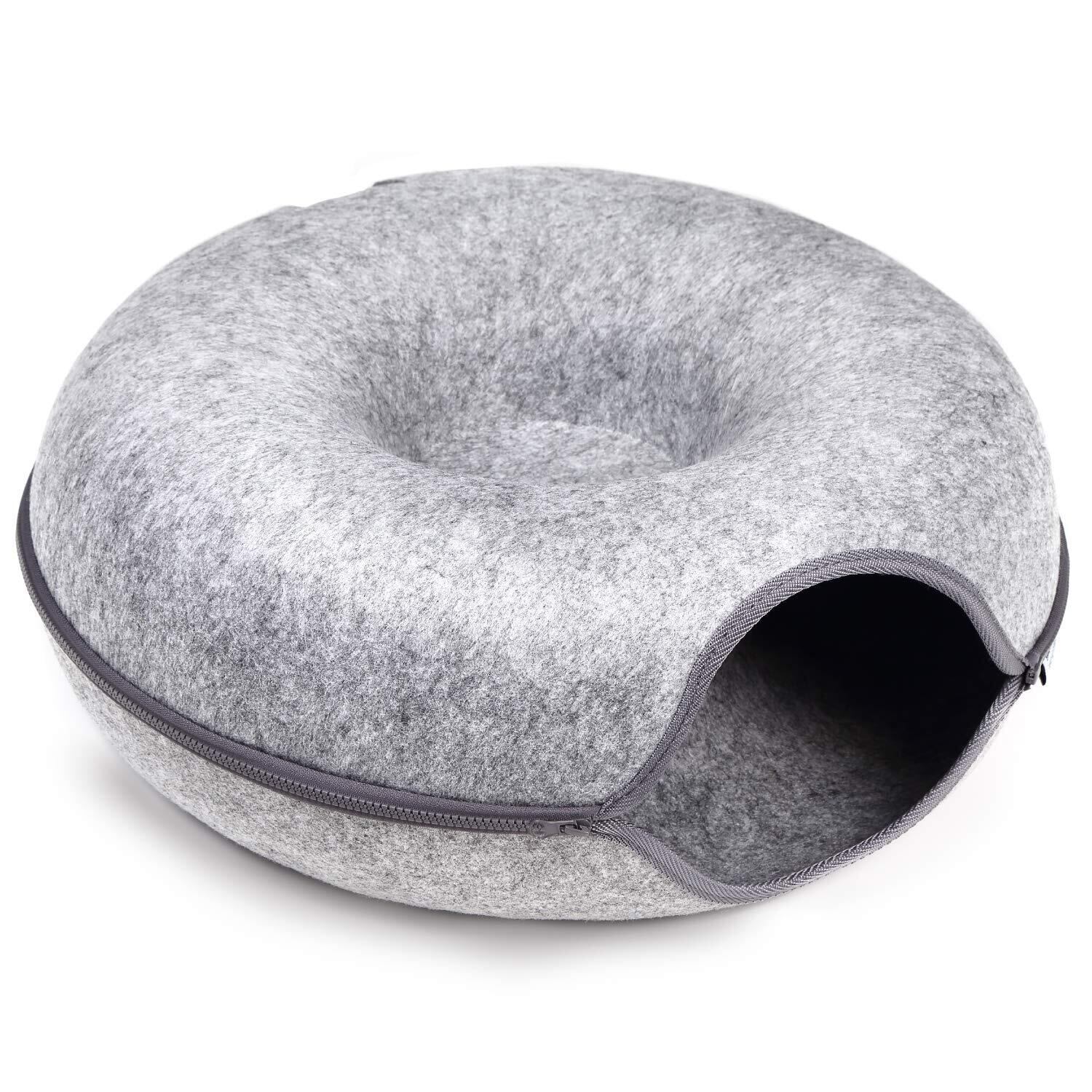 猫の友社 にゃんドーナツ グレー 洗える 頑丈 フエルト製 ドーム型 トンネル 猫用ベッド【国内正規品】キャットハウス セパレート
