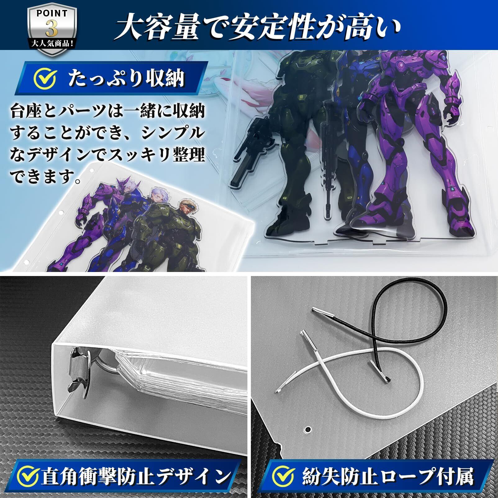 【商品仕様】BIGサイズ アクリルスタンド 収納の仕様は次の通りです。 バインダーサイズ:30.5×24×3センチメートル*2個、ポケットサイズ:29×21センチメートル*20枚、5色付箋*20枚、ページ数:最大20ページ収容可能(最大20個のアクリルスタンドを収納できます)。