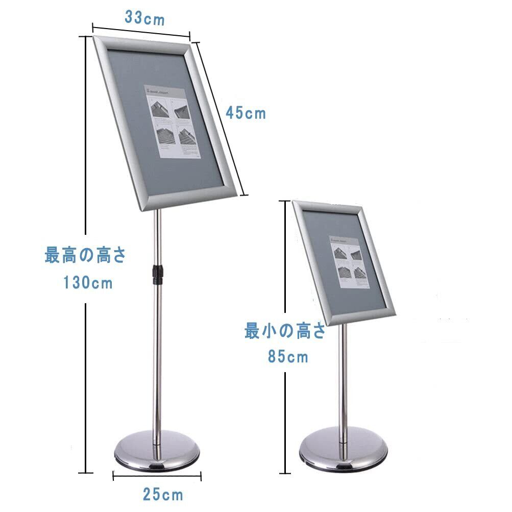 角度と高さの調整可能:案内板のA3メッセージフレームは任意の角度に回転でき、高さは85cmから130cmの間で調整できます。