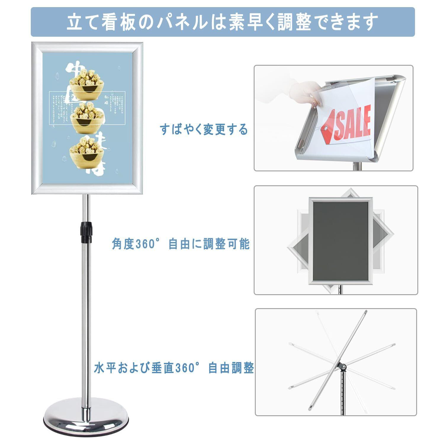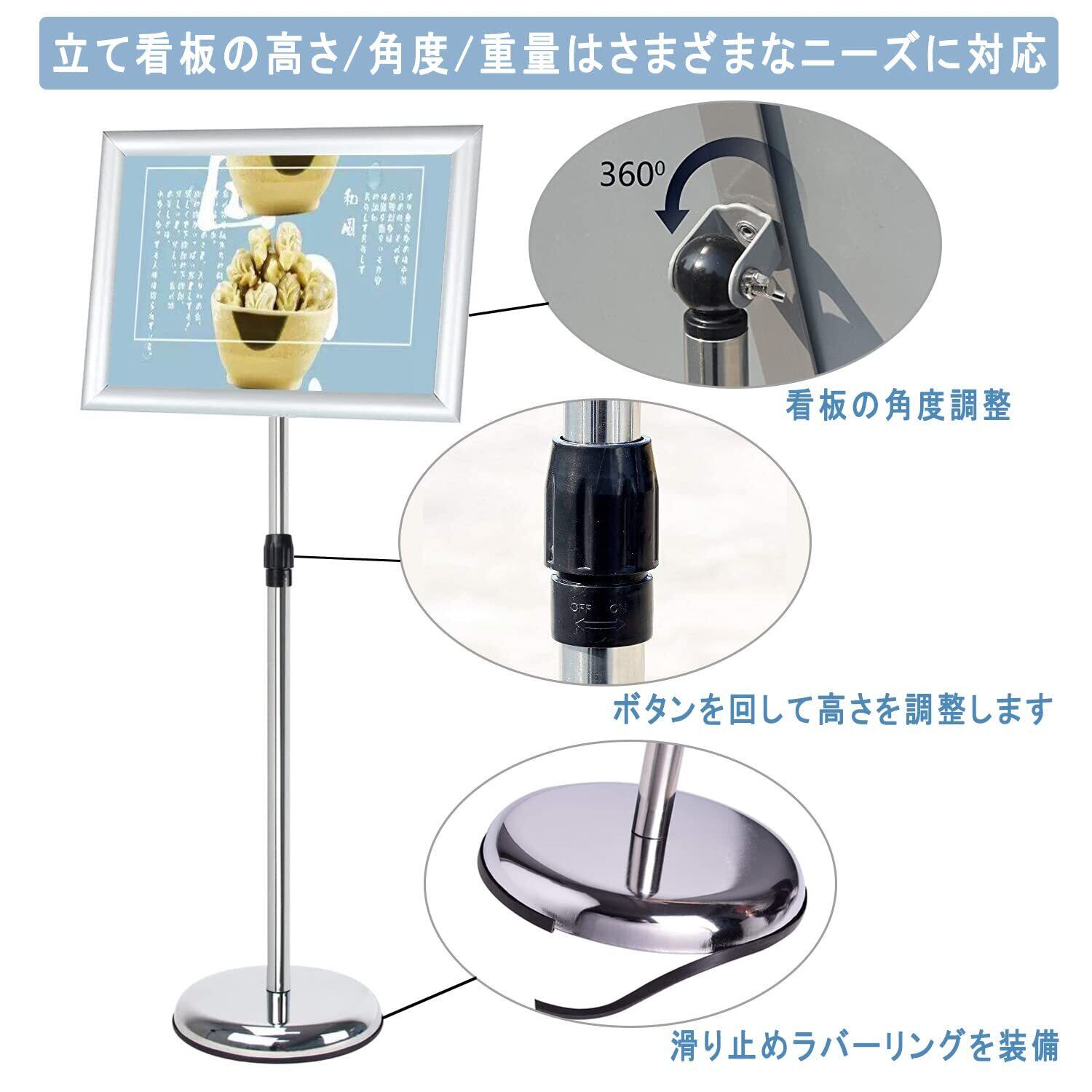 案内板 アルミ掲示板 立て看板 スタンドボード 伸縮メニューボード イベントの案内表示お板 会社案内情報板 (シルバー A3)