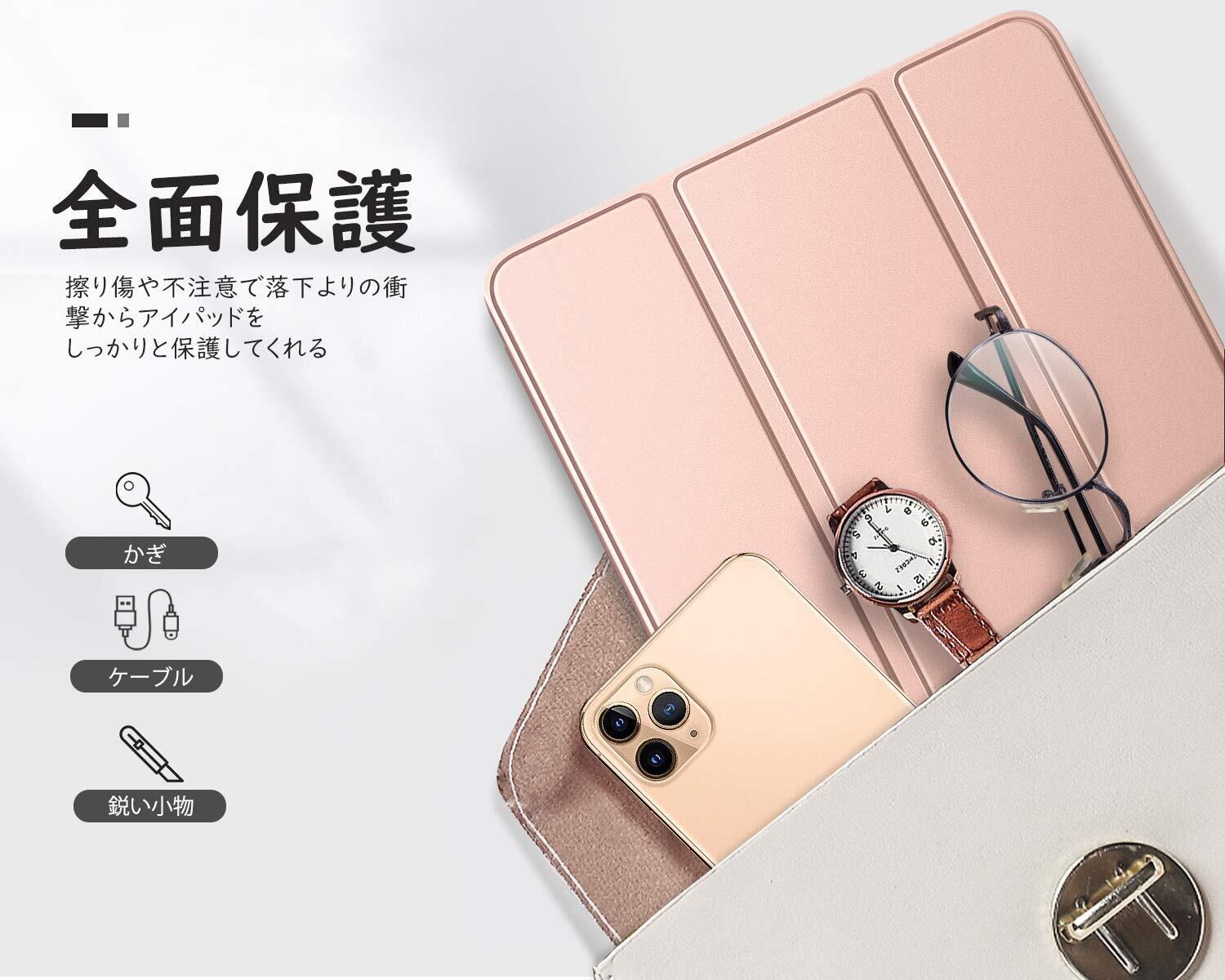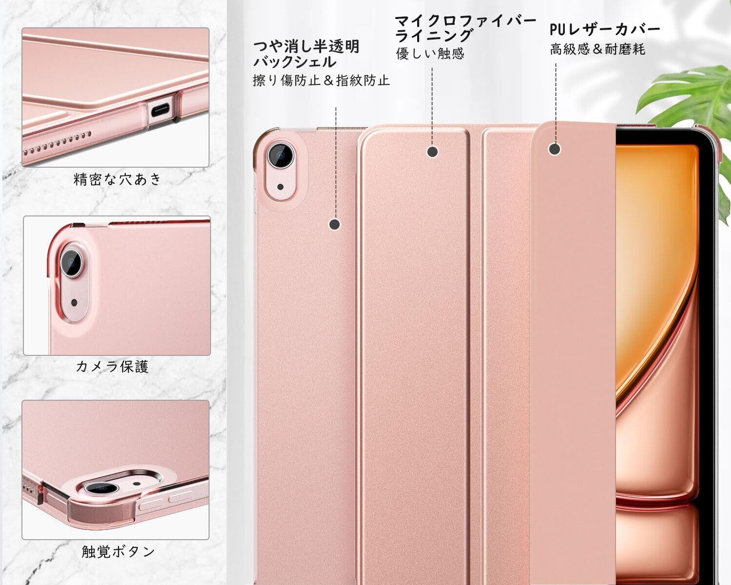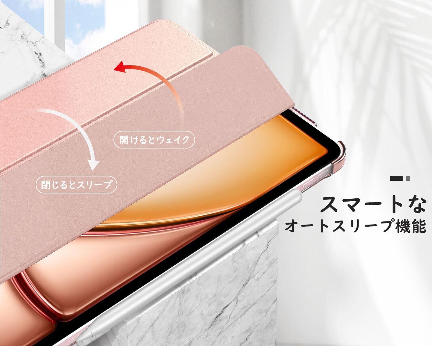MoKo iPad Air 11インチ ケース(2025/2024)、iPad Air5/4 10.9インチ ケース iPad Air(M3/M2) 11インチ iPad Air第5/4世代 10.9 カバー 半透明 オートスリープ ApplePencilPro/第2世代ペアリング&充電対応 三折りスタンド PUレザー 裏地マイクロファイバー スマートケース ピンクゴールド