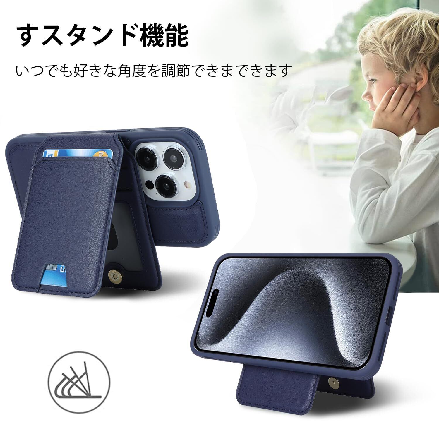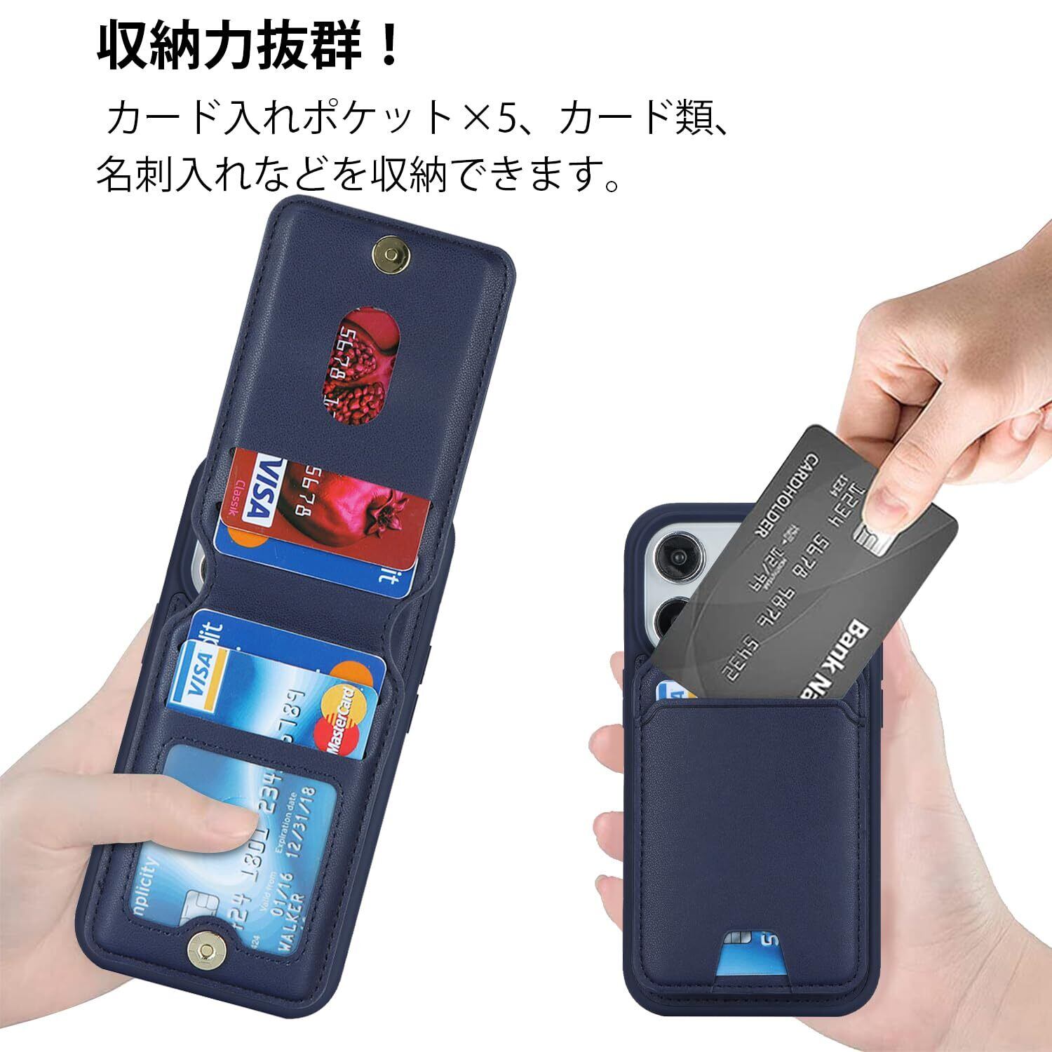 【リムーバブルカードケース】◀ケース背面には取り外し可能な磁気吸引カードケースが付属し、カードを5枚収納できる。たとえば、スイカカードなどの毎日の重要なカードや現金は簡単に保管できます。iPhoneシリーズ専用に設計されているので、ケースを装着したまま、音量ブボタン、カメラ、コネクターなどのを自由に使えます。実用性が高いです。◀横置きスタンド機能:取り外し可能なカードスロットは、横画面でも縦画面でも簡単に実現できる携帯電話スタンドに簡単に変換できます。映画を見たり読んだりすることで手を解放できます。
