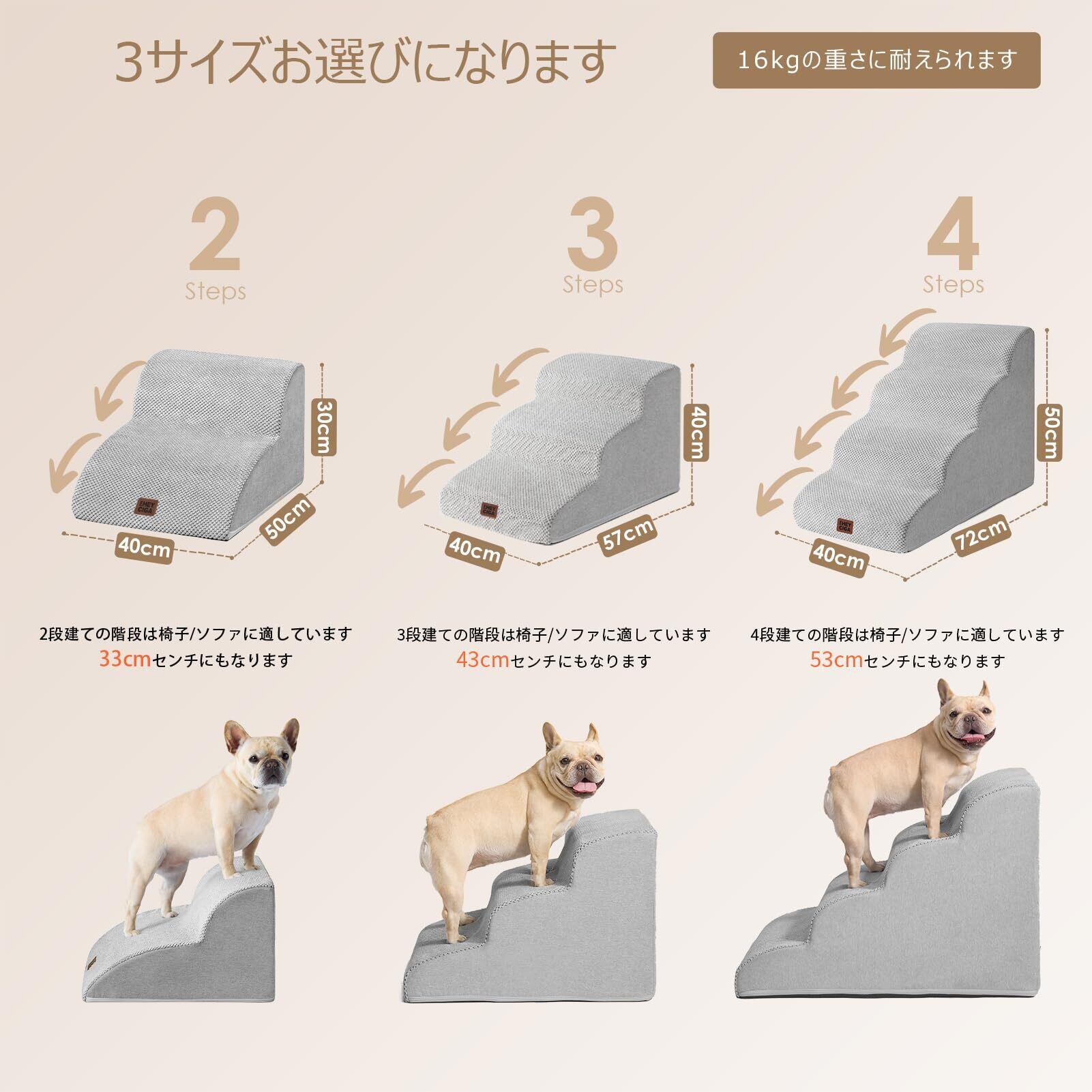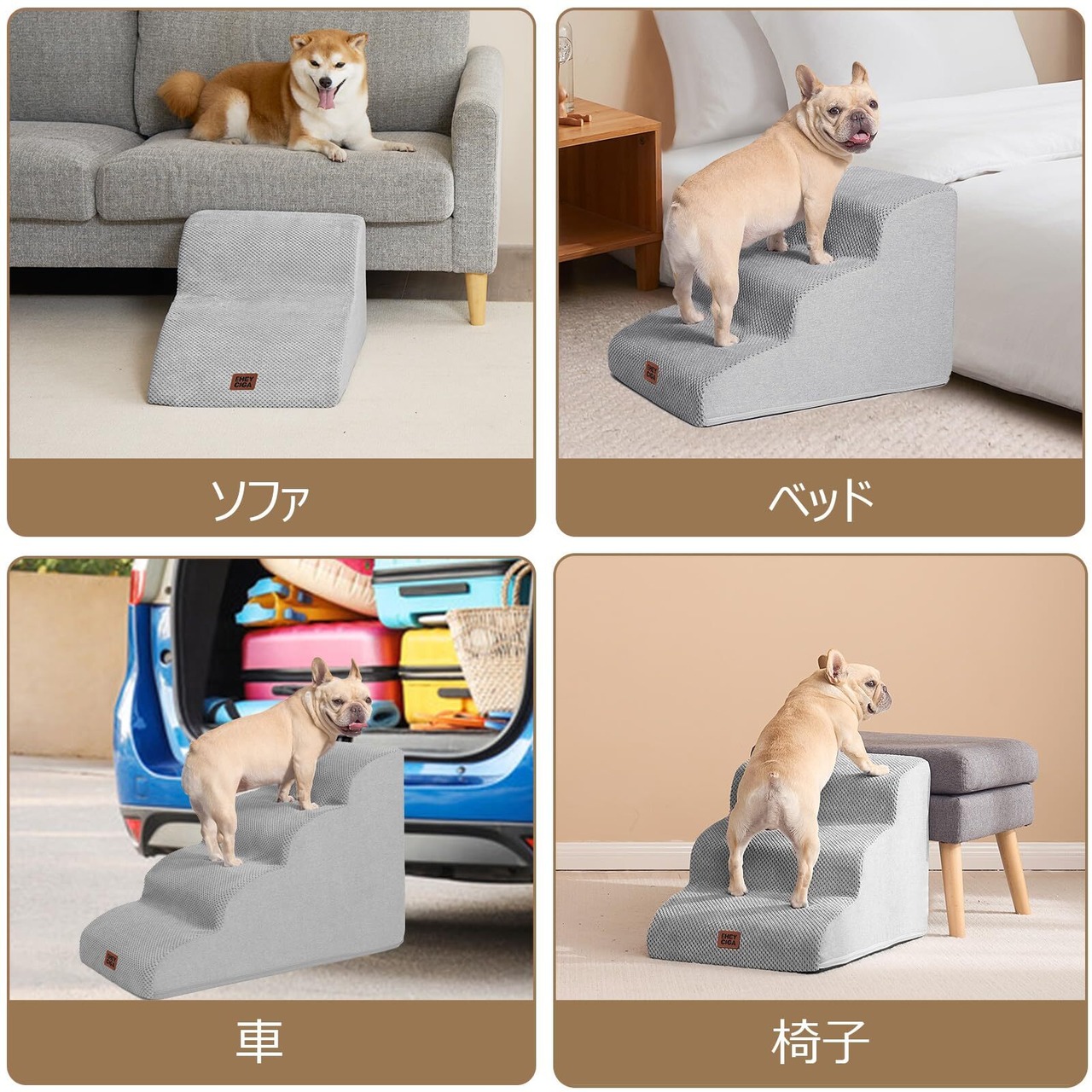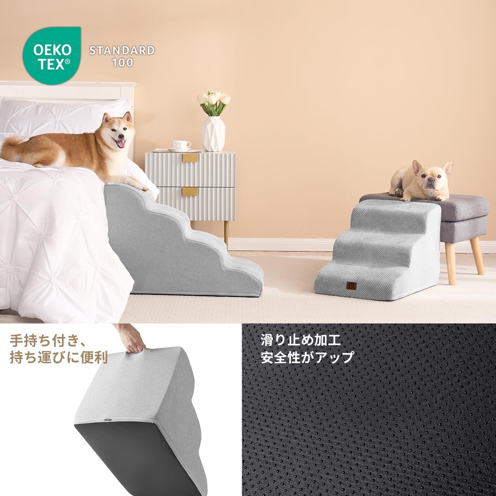 EHEYCIGA 犬階段 3段 ライトグレー ドッグステップ ペット階段 滑り止め付き 洗える カバー取り外し(3段,ライトグレー)