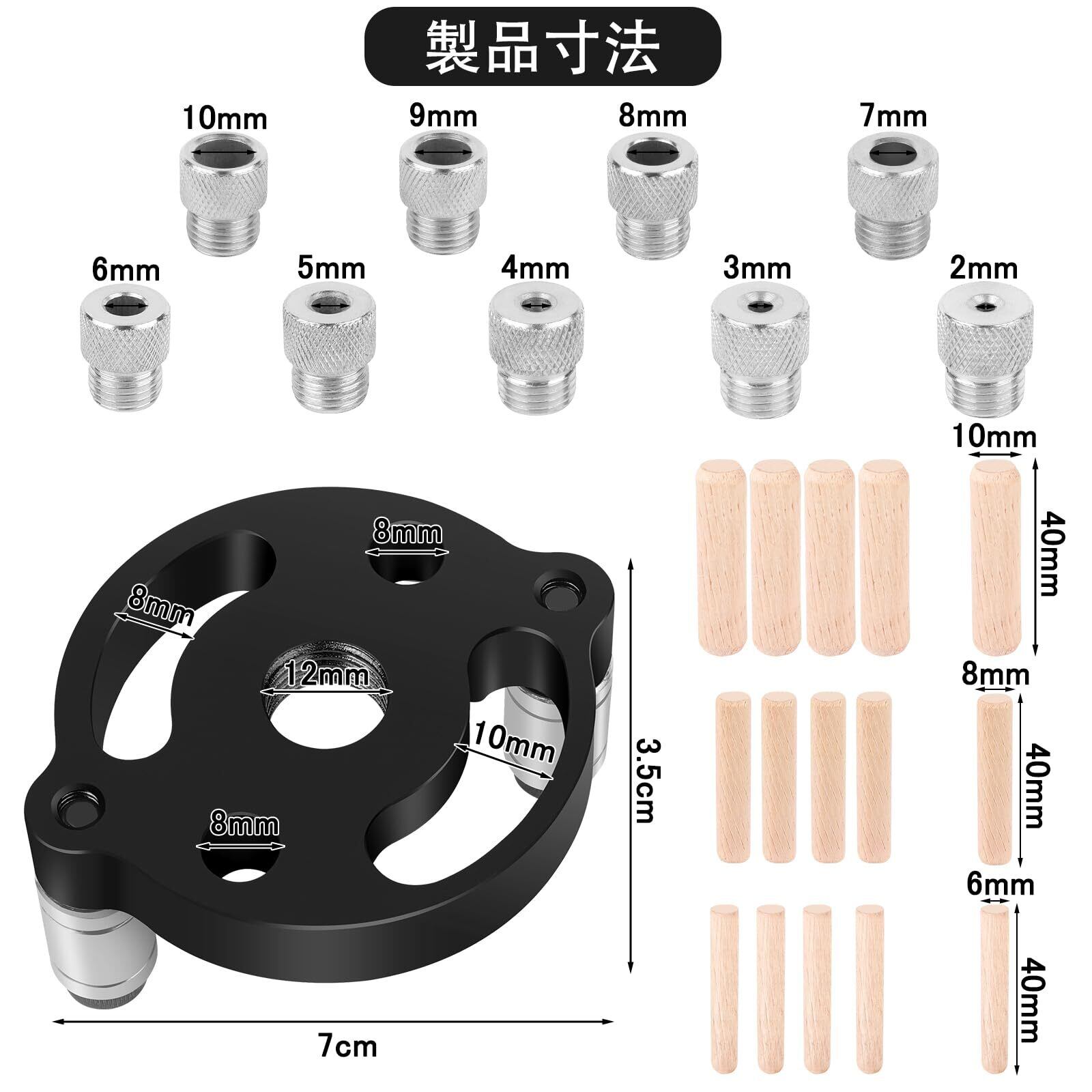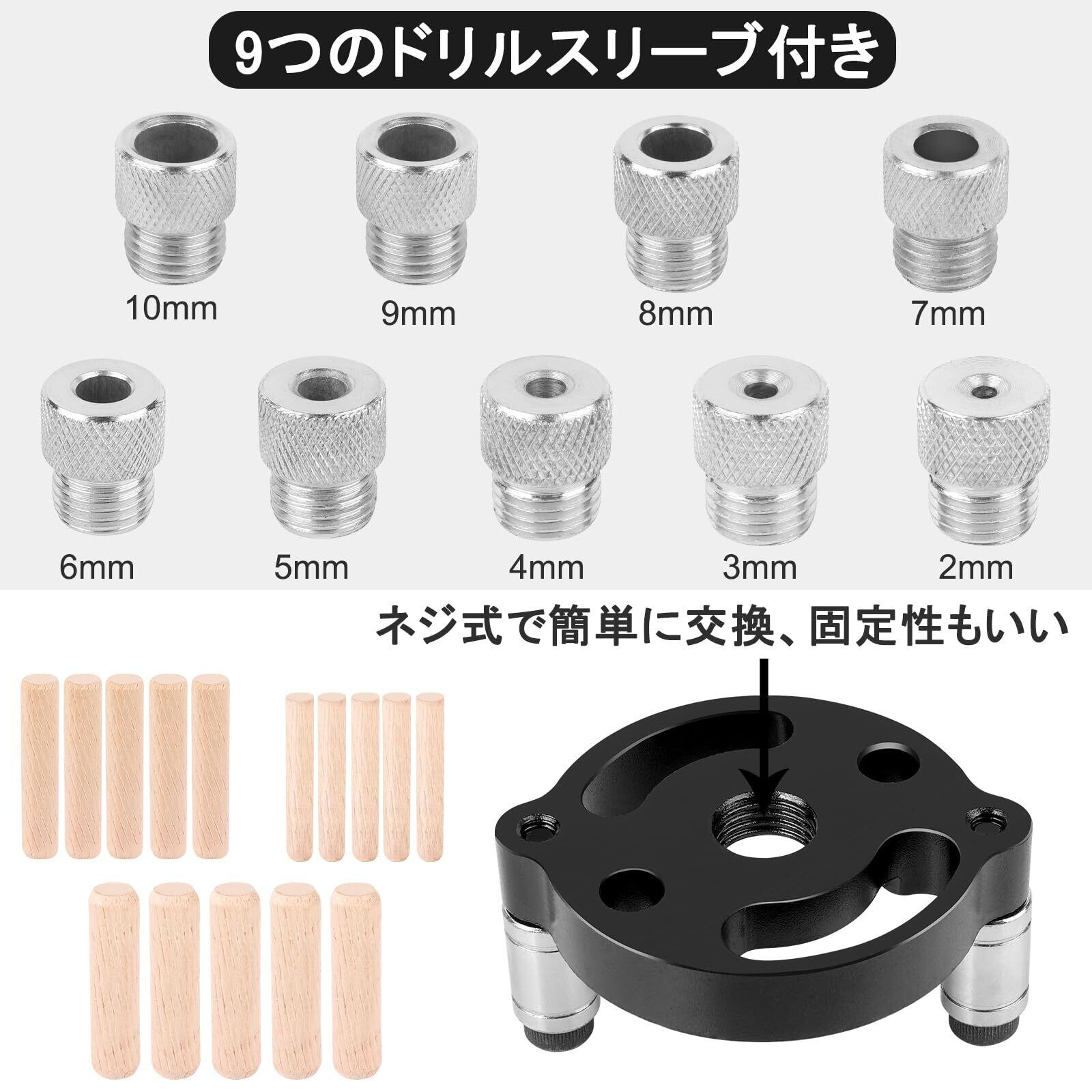 ドリルガイド ドリルスタンド 垂直 穴あけ 2/3/4/5/6/7/8/9/10mmスリーブ付き 6/8/10mm丸太ほぞ付き ダボ穴ガイド ドリルガイドキット ドリル位置決めガイド 木工工具 (ブラック)