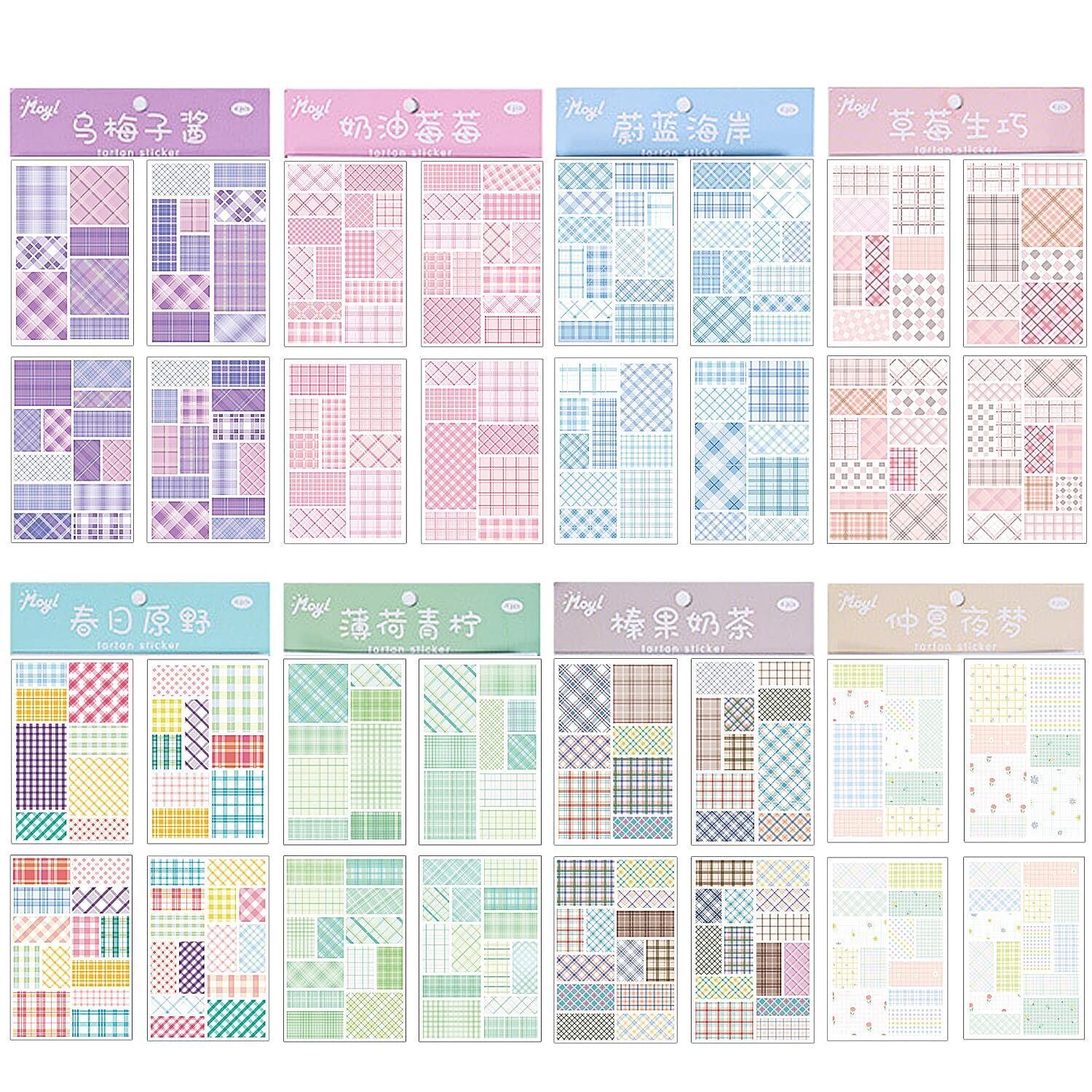 寄せ書きシール大量 JKチェック柄ステッカー 付箋 可愛い 手帳 日記 コラージュ素材ラッピング ノート DIYのデコレーション用 強粘着マルチサイズの格子縞ステッカー 352枚