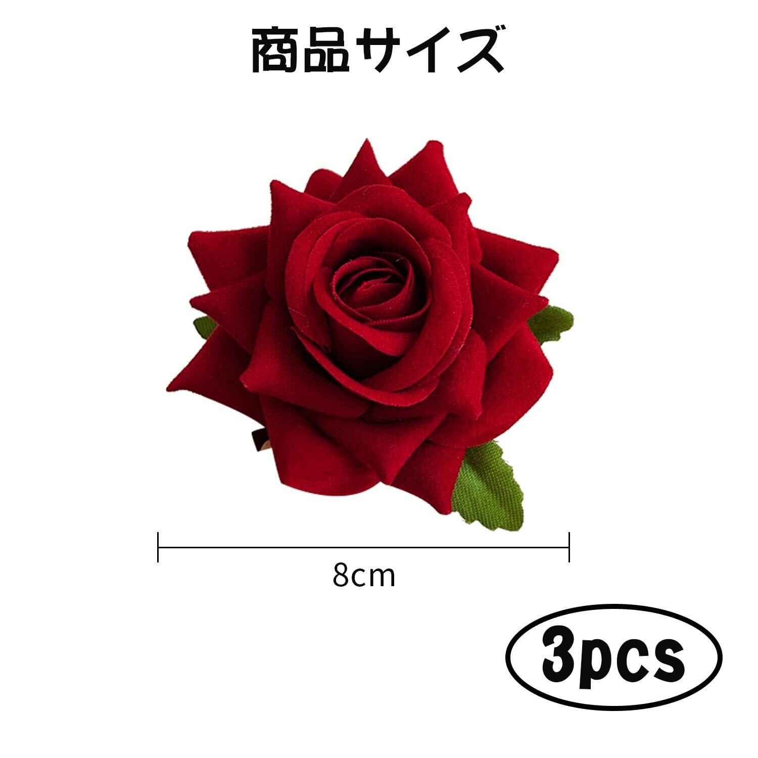 【セットには】各セットに3つの赤いバラのヘアピンが付いています。バラの花はヘアピンとブローチの裏地に使われている。髪のどこにでも固定できるヘアピンと、服に使えるピン。