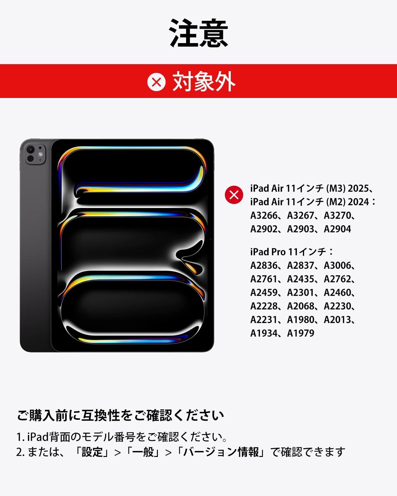 互換性:iPad 10.9インチ(第11/10世代)(モデル番号:A2696、A2757、A2777)のみ対応しています。