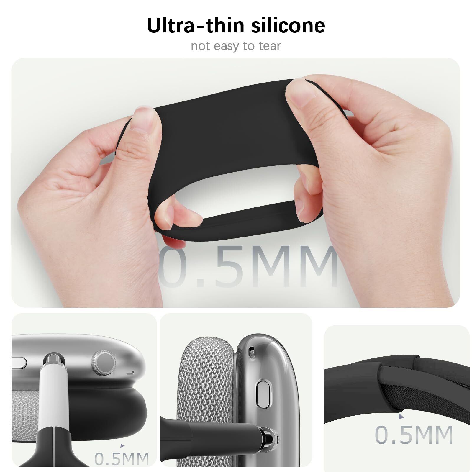 AIRSPO AirPods Max用シリコンケース、クリアソフトTPUイヤカバー/ヘッドバンドカバー、AirPods Maxアクセサリー(ブラック)