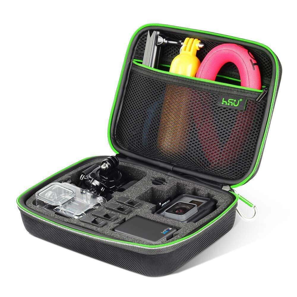 HSU 収納ケース gopro ハードケース GoPro Hero13/12/11/10/9/8/7/6/5対応 及び他のアクションカメラ 収納バッグ アクセサリー収納 防塵 防水 アクションカメラ用キャリーケース (中 グリーン) | yankees