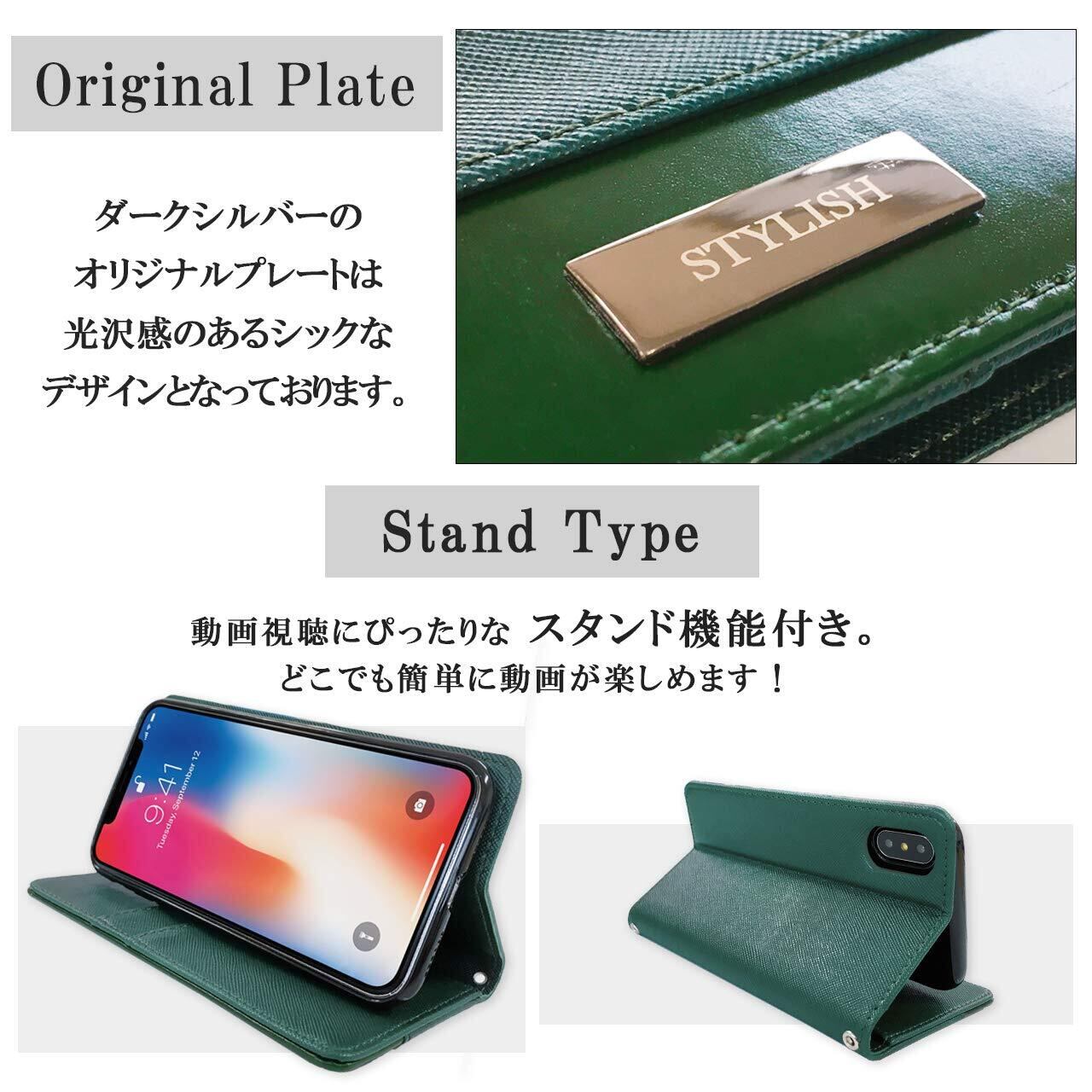 サフィアーノ調PUレザーと光沢感のある上質な本革オイルレザーを使用したスタンド機能付き手帳型スマホケースになっております。