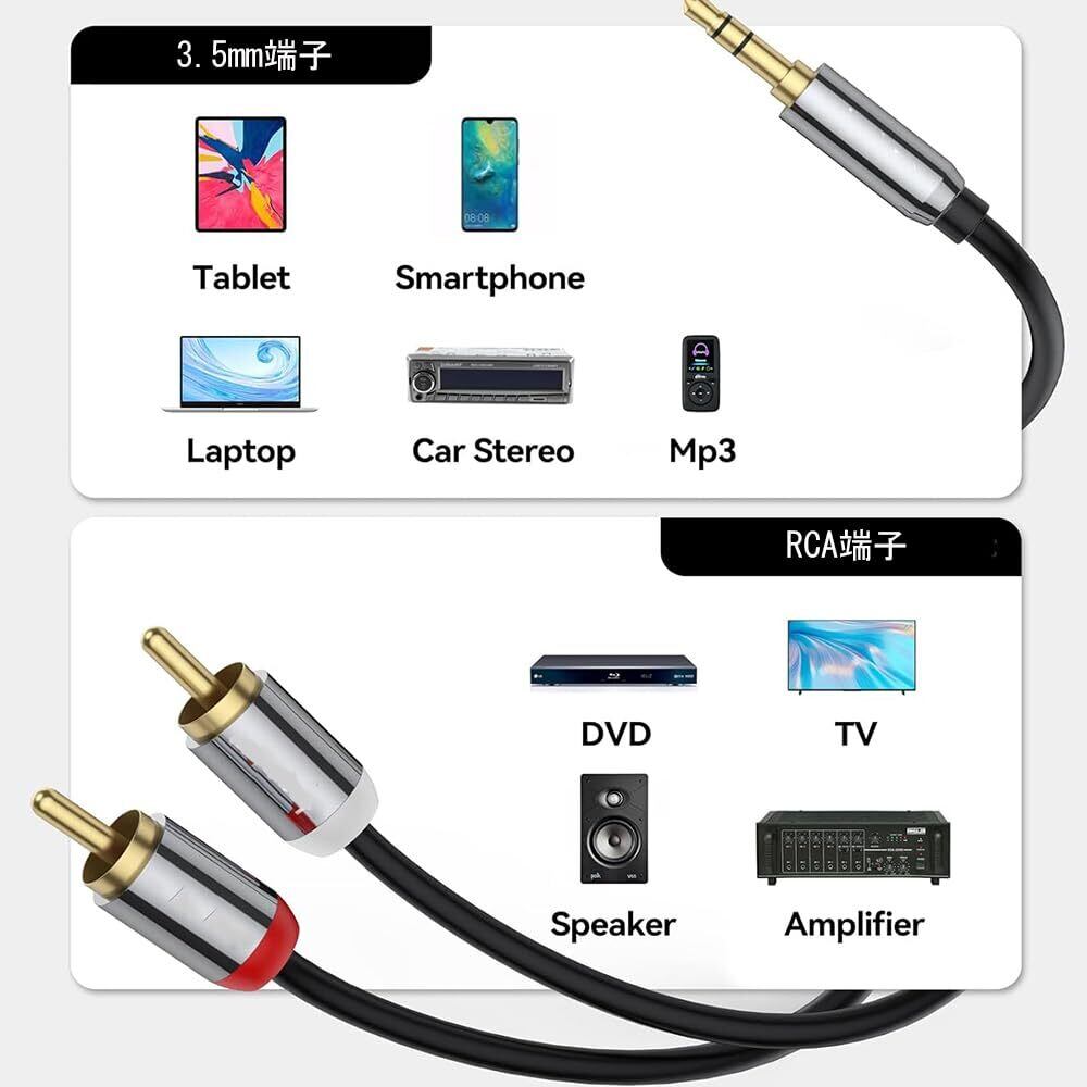 【幅広い互換性】この3.5mm RCAオーディオケーブルは、さまざまなRCA端子ステレオシステムデバイスや3.5mm AUX端子デバイスと互換性があり、携帯電話、タブレット、コンピュータ、音楽プレーヤー、カーオーディオなどさまざまなデバイスに接続できます。