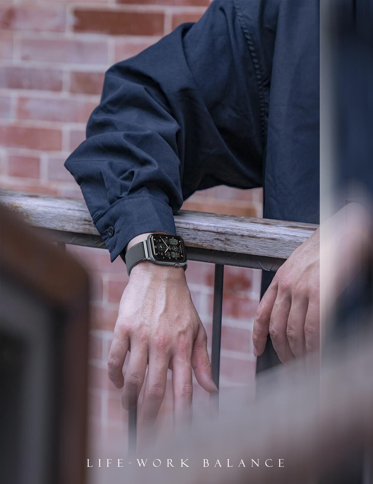 【全機種対応】49mm/46mm/45mm/44mm/42mm/41mm/40mm/38mmに対応しています。Apple Watch Ultra/Ultra 2/Series SE/10/9/8/7/6/5/4/3/2/1の全シリーズと互換性があります。※ご購入前にサイズをご確認ください。
