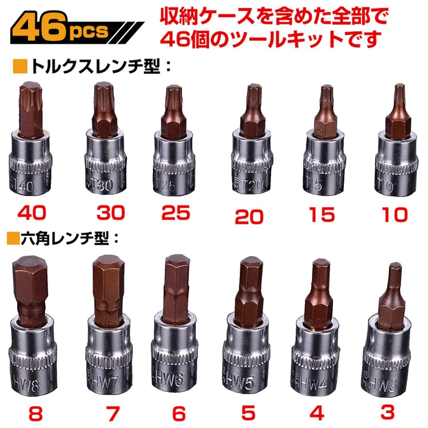 ソケットレンチセット 差込角6.3mm(1/4インチ)ラチェットレンチ 46pcs ソケットドライバー組み合わせ ツール
