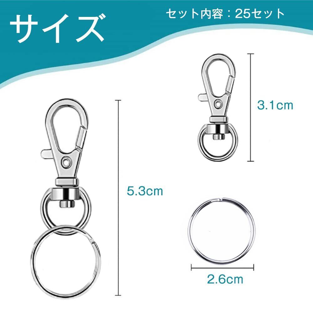 セット内容:25セット:25リング フック,25キーホルダー。カラー:シルバー。サイズ:全長5.3cm,リング フック:2.6cm,キーホルダー:3.1cm。