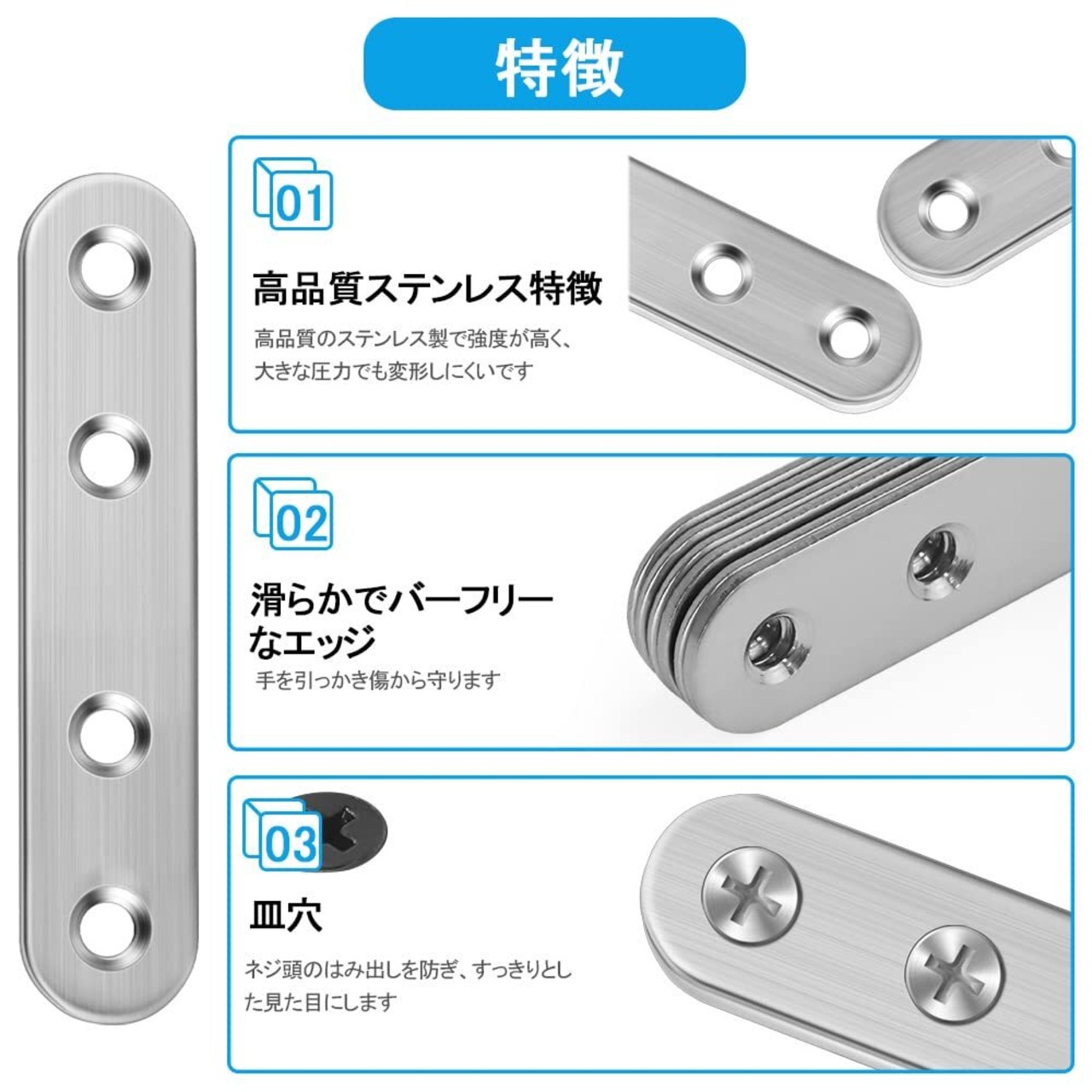 【パッケージ内容】:合計16PCSステンレス鋼ストレートブラケットがパッケージされており、64のネジが取り付けられています。これは、安全かつ迅速に一緒に屋内家具やオブジェクトを接続または修正することができ、すぐに使用することができる完璧な家庭用DIYアクセサリーです。