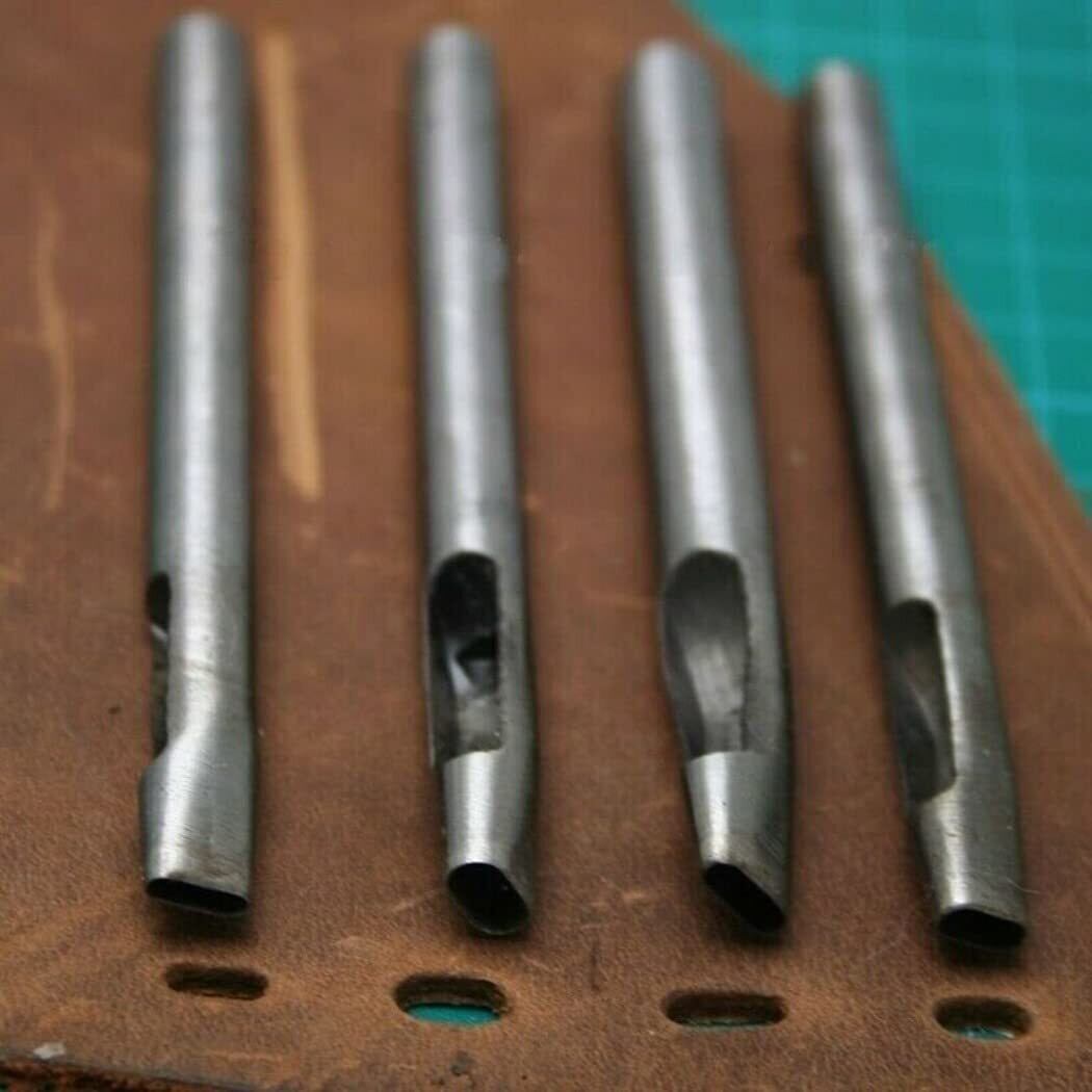 HappyHome 穴あけ 楕円 ポンチ 4本セット レザークラフト 穴あけ道具 打ち抜きポンチ 2mm*7mm 3mm*6mm 3mm*8mm 4mm*7mm