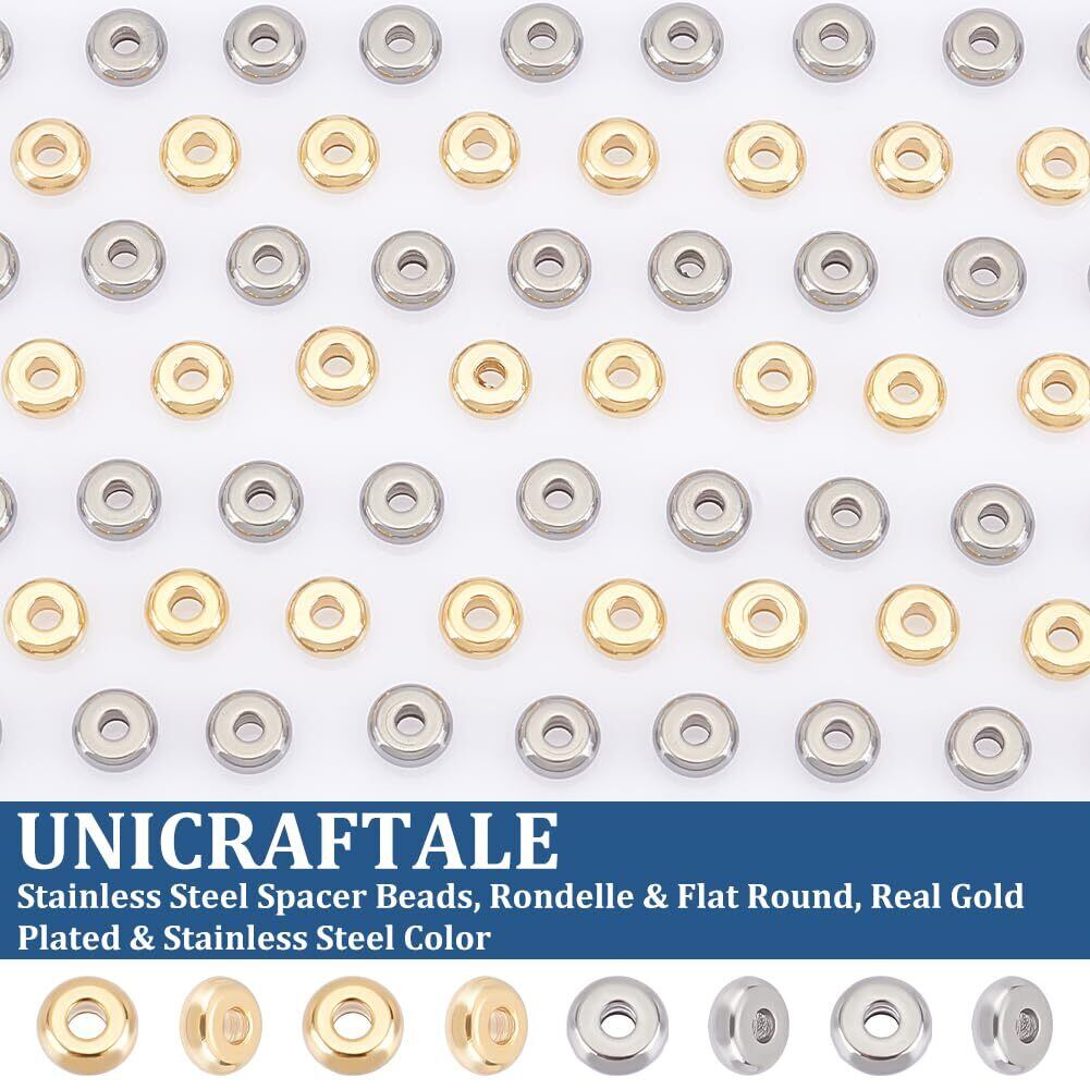 UNICRAFTALE 100個 2色 ステンレススチール スペーサービーズ - 5mm フラット ラウンド ルーズビーズ DIY ブレスレット ネックレス ジュエリー製作用
