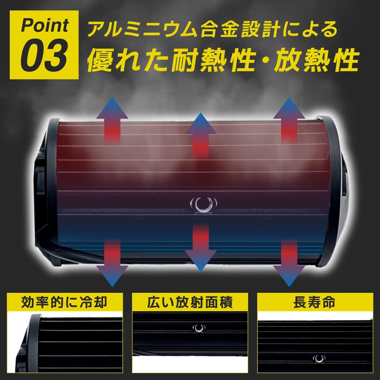 広範囲の照射範囲: このLED作業灯は優れた投光性能があり、広い範囲に明るい光を均一に照射します。作業現場や野外での作業に最適であり、暗い場所でも安全に作業できます。
