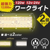 Crown Doris LED作業灯 120W ワークライト 12V/24V 農業機械 船舶 投光器 集魚灯 防水防塵 IP67 イエロー 黄色 2個セット