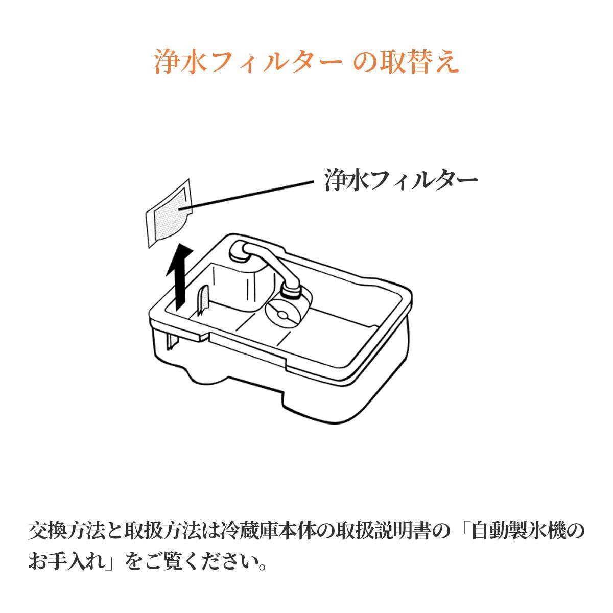 交換方法と取扱方法は冷蔵庫本体の取扱説明書の「自動製氷機のお手入れ」をご覧ください。