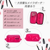 チャックを開ければ開け口が大きく開くため、中身が見やすい! どこに何があるのかが一目瞭然です。 忙しい朝でももたつくことなくメイクができます。