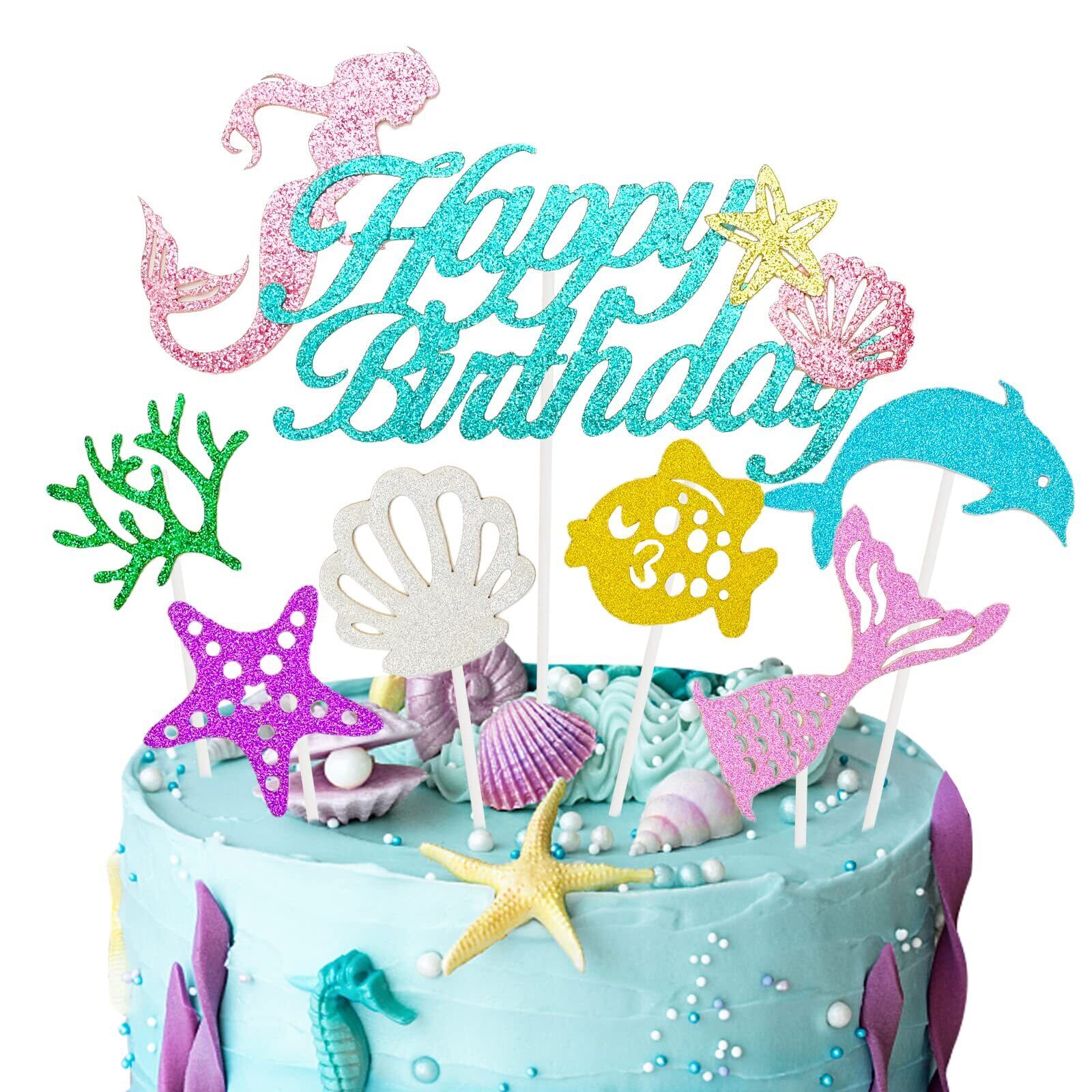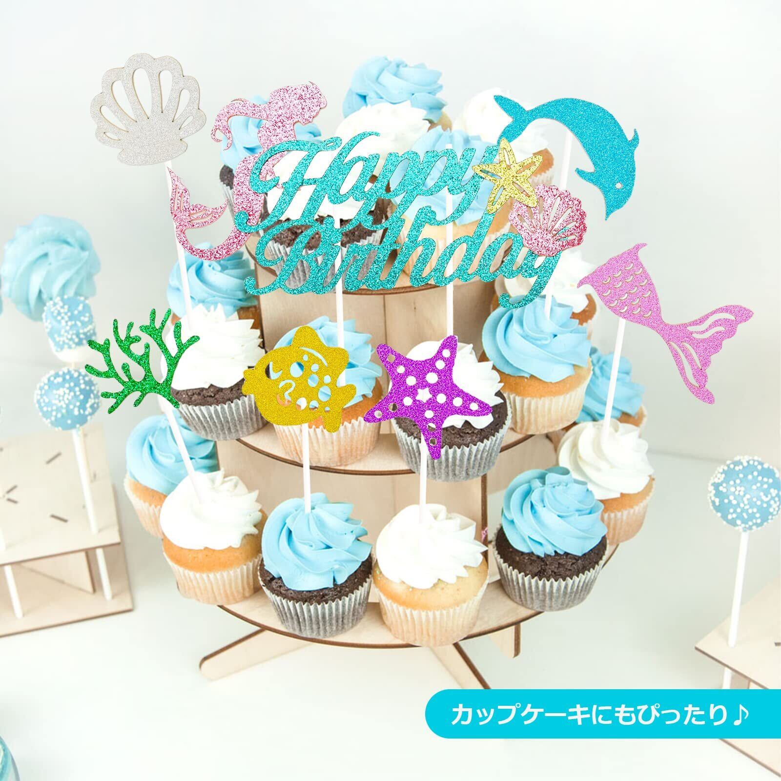Paready ケーキトッパー 誕生日 ケーキ飾り ケーキピック ケーキ挿入カード 7点セット Happy Birthday バースデー ケーキ デコレーション カップケーキ 飾り 女の子 マーメイド | yankees