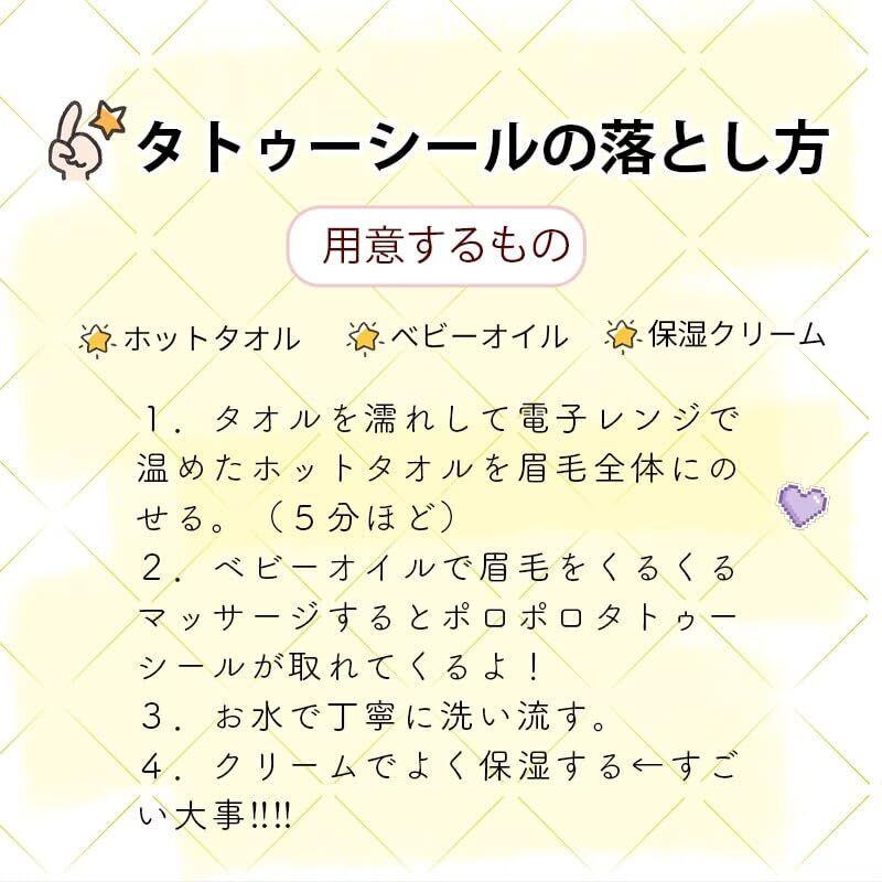 ・[使用方法]①顔を洗い、眉毛の皮脂や汚れを洗い流した後、水気をふき取る②シールを台紙からおおまかにカットする③シールを水で濡らして光沢のある面を眉毛側にして貼り付けるorシールを押し当ててから水を含ませたコットンなどでシールを濡らす④20~30秒後に台紙を剥がす⑤ティッシュなどで優しくおさえて密着させる⑥乾いたら完成