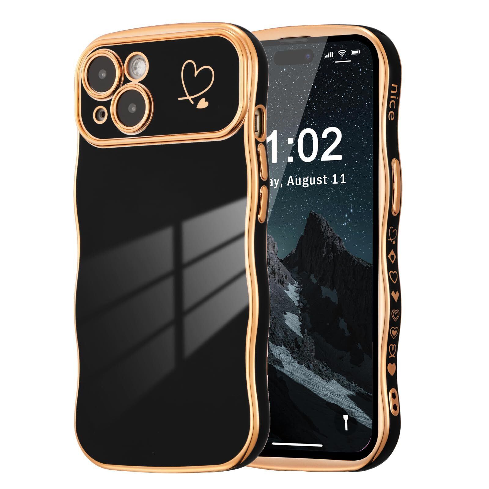 ZTOFERA iPhone 13 用 ハートケース 人気 おしゃれ iPhone 13 波型ケース 柔軟な TPU シリコン ウェーブ デザイン スマホケース メッキ加工 ソフト 軽量 耐衝撃 韓国 可愛い アイフォン 13 ケース 女子 女性 携帯電話カバー ワイヤレス充電対応 (ブラック) | yankees