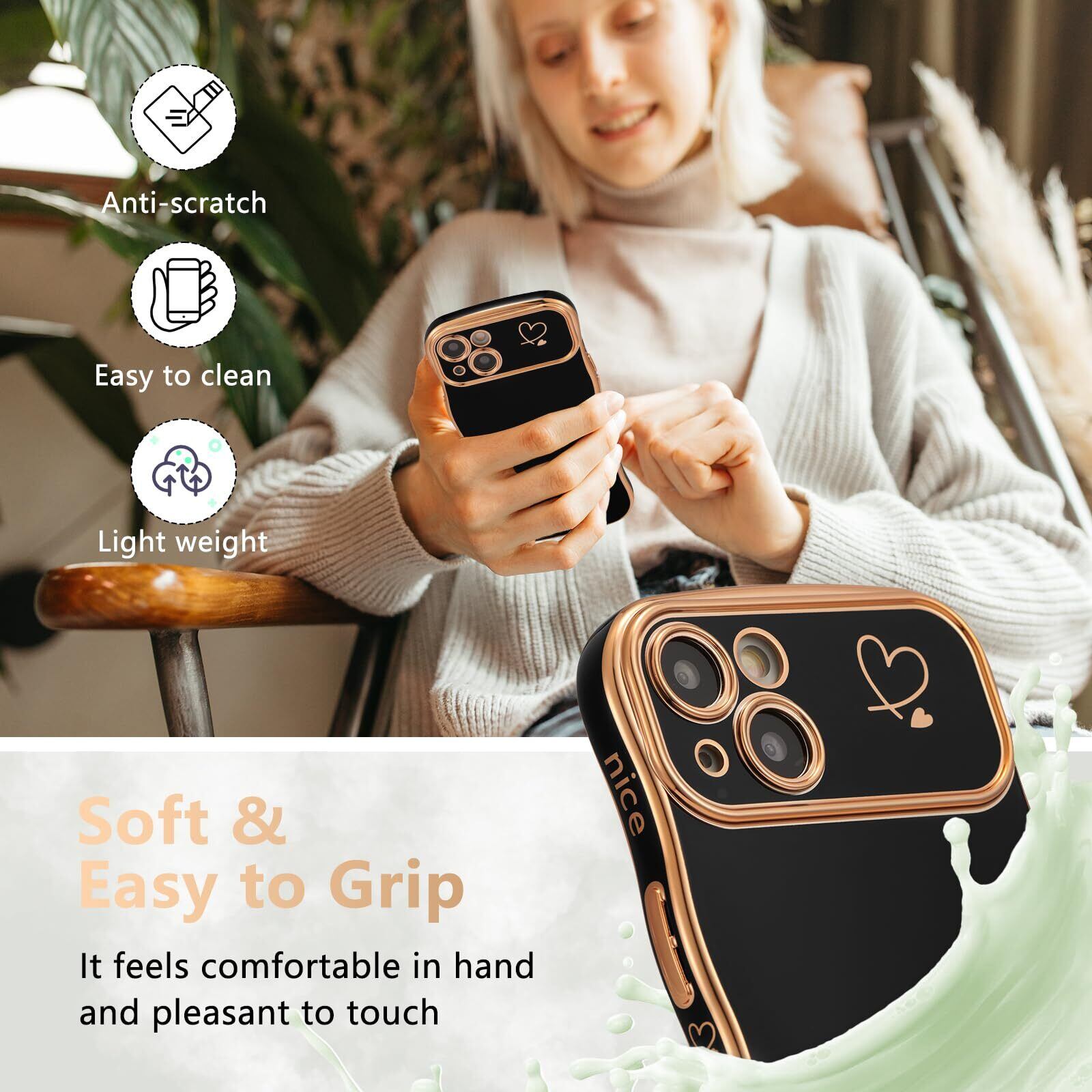 【美しいデザイン】波状の側面が快適なグリップを提供;メッキトリムと愛の心は、携帯電話のかわいいとファッションを作る;女の子と女性のための素敵な贈り物。