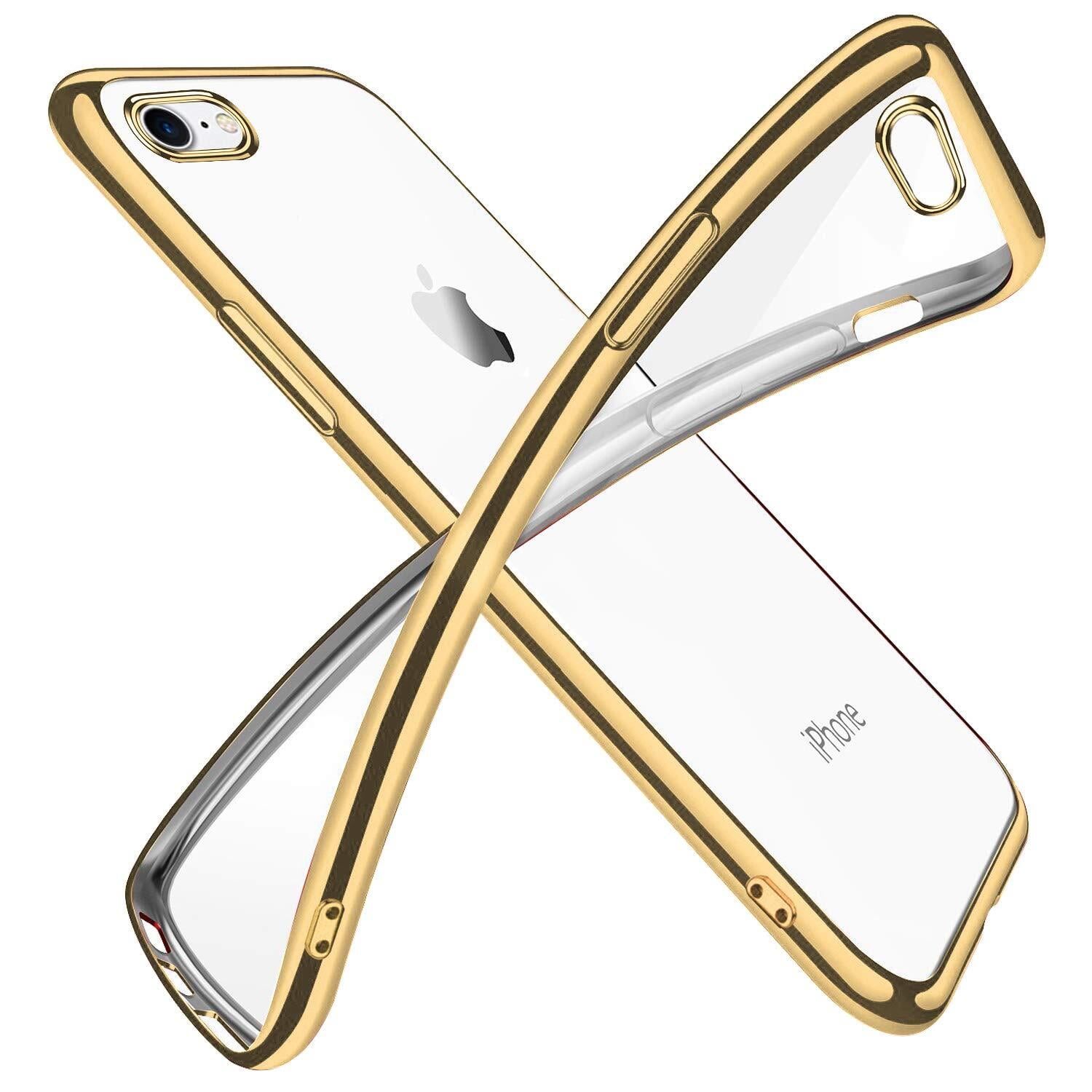 iPhone6 ケース iPhone6s ケース クリア 透明 tpu シリコン メッキ加工 スリム 薄型 4.7インチ スマホケース 耐衝撃 ストラップホール 黄変防止 一体型 人気 携帯カバー ゴールド