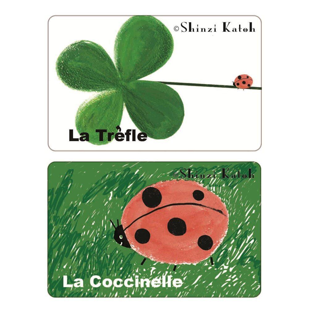 シンジ カトウ(Shinzi Katoh)デザイン「クローバーとてんとう虫」のICカード情報保護用シールです。