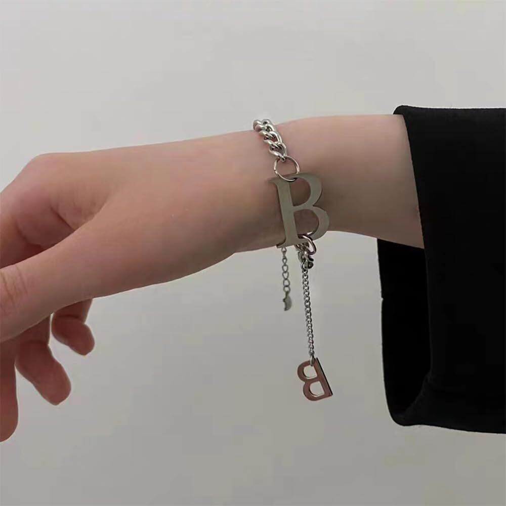 [VIVIZHWH] ブレスレット メンズ ステンレス 金属アレルギー対応 ヒップホップ ラッパー ダンサー ストリート アクセサリ 人気ブレスレット 大小の文字Bのブレスレット 長17cm エクステンションチェーン長さ 4cm ギフトボックス包装